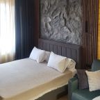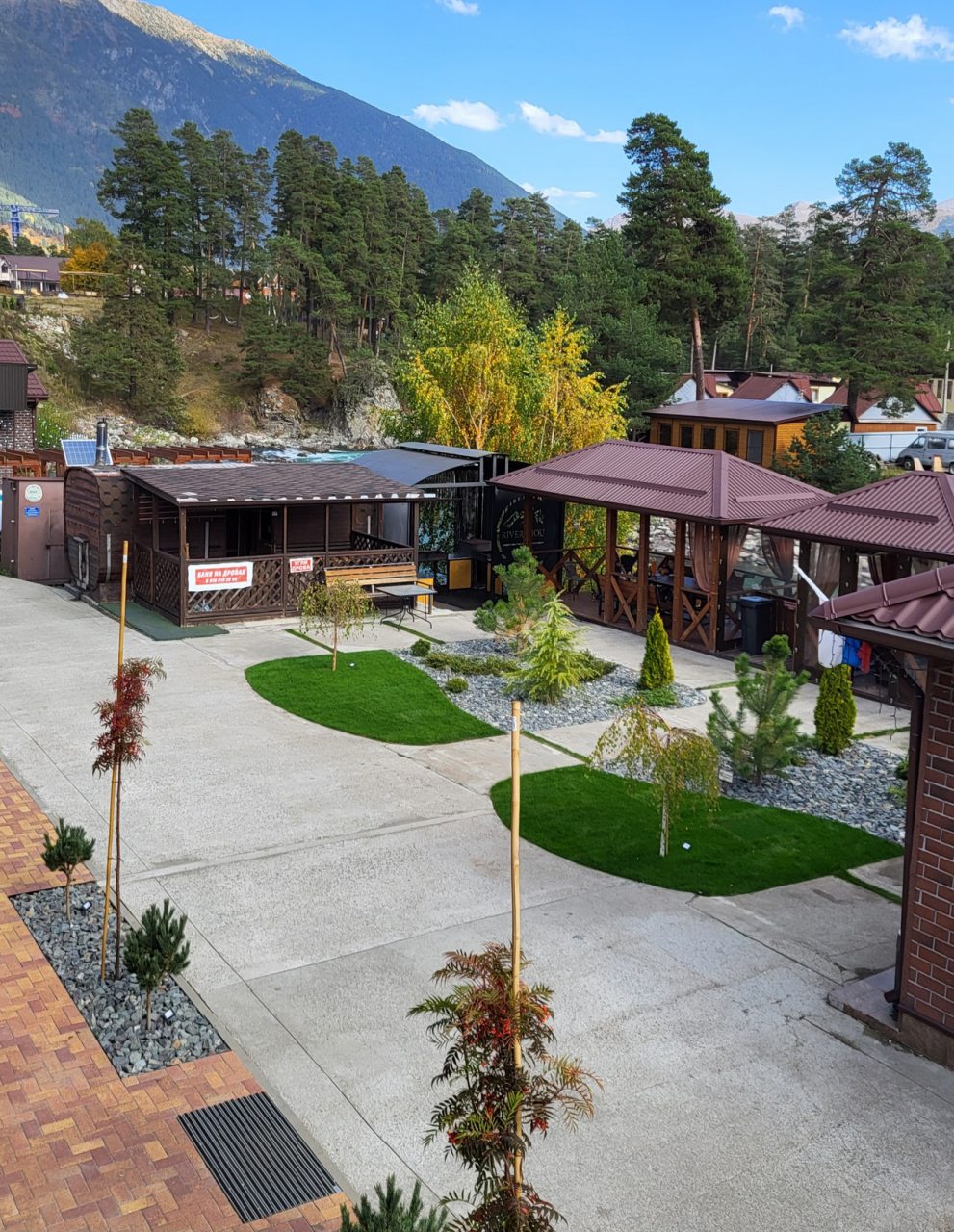 Приехали. Сразу заселились в номер. В номере кровати с чистым свежим бельем, полотенца. Из мебели шкаф, тумбочки, кресло, свет прикроватный. Очень хорошая совмещённая ванная, душ тропический. Перебоев с водой и светом не было, пока мы жили тут. Есть кафе с кавказской кухней и есть общая кухня, если кто самостоятельно готовит.