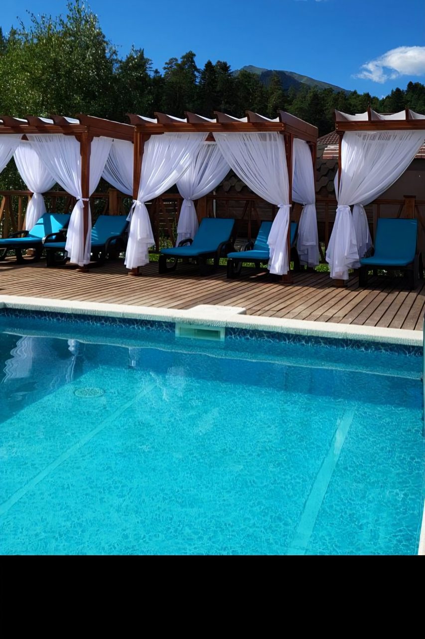 Бассейн с видом на горы и реку – идеальное место для отдыха и расслабления после долгих поездок и горнолыжного катания (оплачивается отдельно).