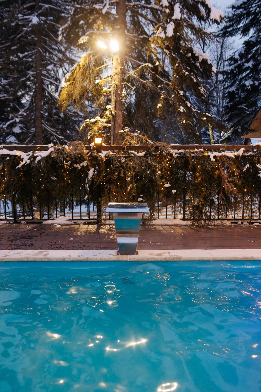 Открытый тёплый бассейн, сауна, ресторан, все на высшем уровне!)