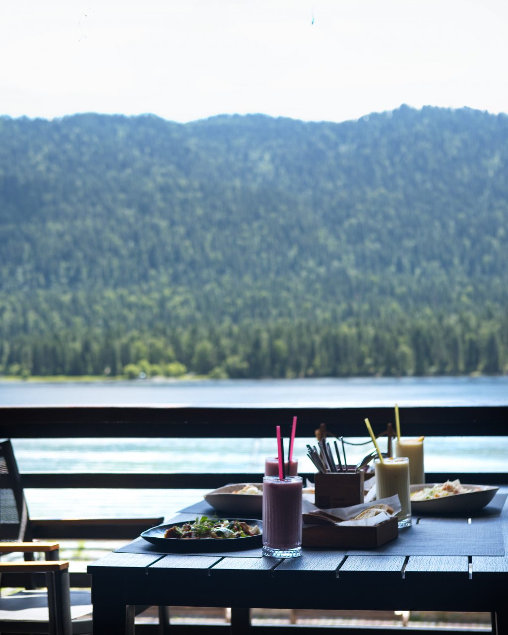 Есть собственный ресторан, где готовят вкусные блюда с соблюдением лучших традиций Алтая. Заказ еды по меню. На террасе есть мангал, которым можно воспользоваться и пожарить шашлык. В домах, где есть кухня, все удобства для самостоятельного приготовления пищи.