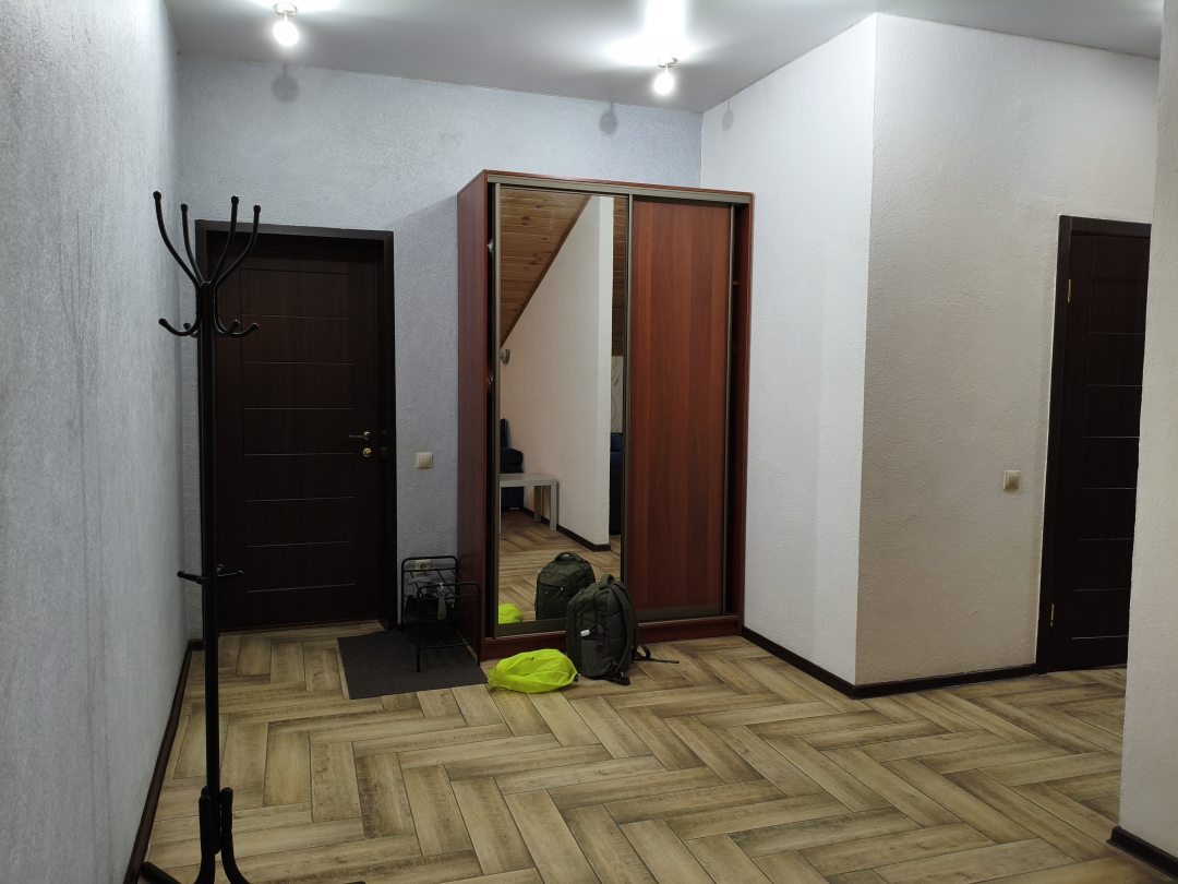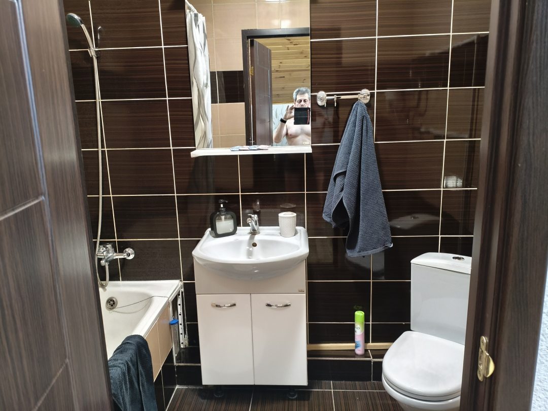 Из недостатков: нам было не критично, но одна прикроватная лампочка не работала, и дверь в ванную немного заедала