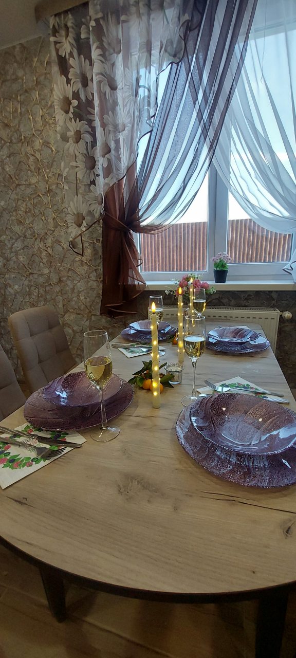 Кухня укомплектована бытовой техникой: чайником, холодильником, варочной панелью, столовыми приборами, специями, обеденным столом. Неподалеку расположены магазины продуктов.