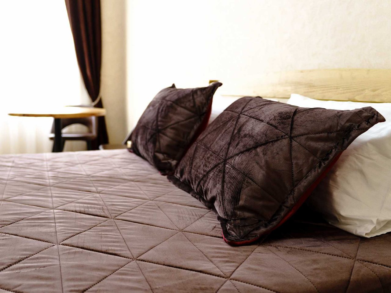Для выбора доступны различные категории номеров. В каждом предусмотрена качественная мебель и техника, в том числе удобные кровати, прикроватные тумбы и светильники, индивидуальный санузел с необходимой сантехникой.