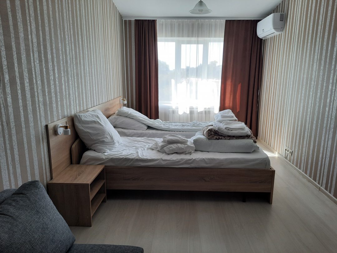 Удобное расположение прямо около дороги. Приехали под утро, без проблем заселились и выспались. Понравилось то, что круглосуточно берут трубку и оперативно отвечают на все вопросы. Если понадобится ночлег по дороге, во время путешествия, скорее всего еще обязательно вернёмся. Белье чистое, хоть и не новое, выдали полотенце. Есть небольшая кухня, где имеется все необходимое. Душ, туалет, умывальник- все чистое. Администраторы вежливые Все прекрасно