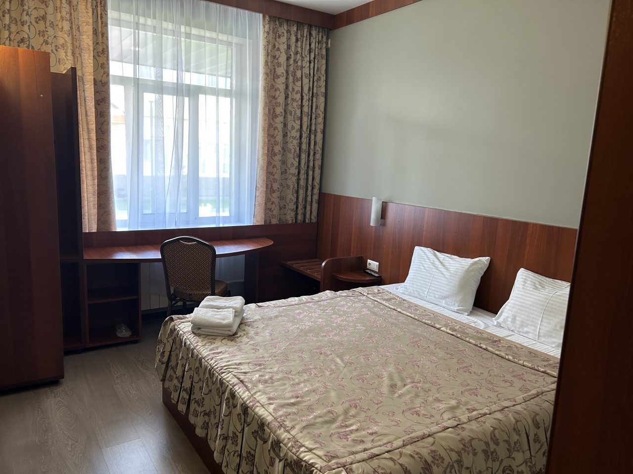 Отель хороший. Всё чисто и аккуратно. Персонал постарался. Территория ухоженная. Подстриженный газон и деревья. Приятная атмосфера. В номере есть телефон, телевизор, холодильник, чайник, санузел с душем, удобные места для хранения и хорошие кровати с чистым достойным постельным бельём.