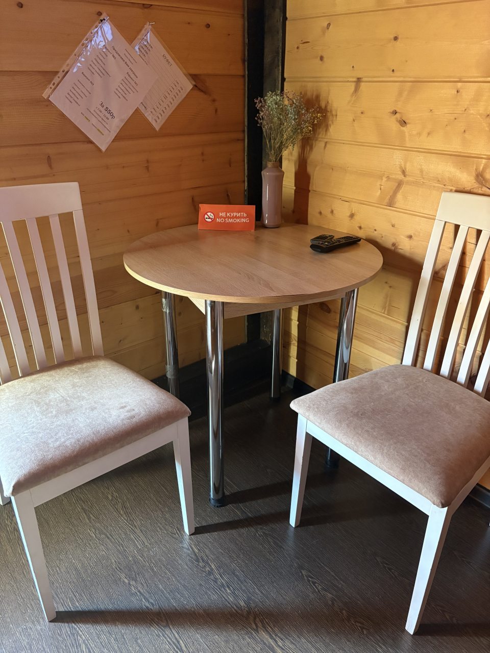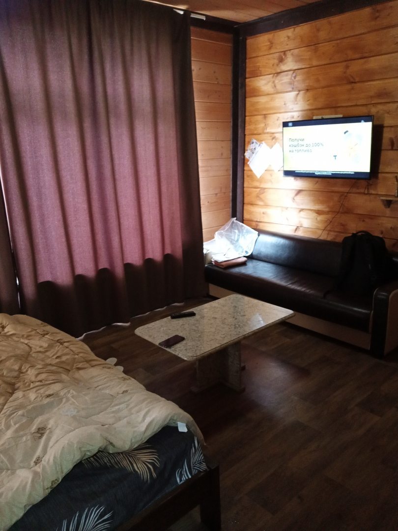Приехали 25 сентября. В отеле тепло. В отеле пахнет деревом. Нет посторонних запахов. В сауну сходили на 2 часа. Сауна очень жаркая и комфортная. Спалось хорошо. Шума от дороги не слышно.