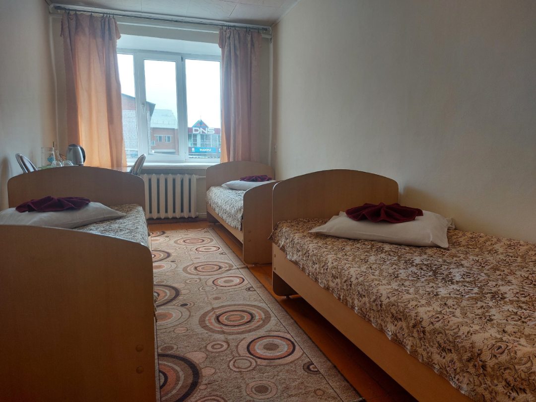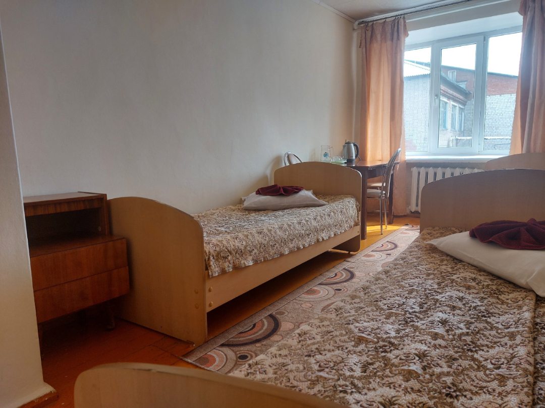На выбор предоставляются номера разных категорий с двуспальной кроватью или койко-место в общем номере. Из удобств имеются комфортабельные кровати, телевизор, стол, чайник. На этаже — санузел с душевой кабиной и набором гигиенических средств.