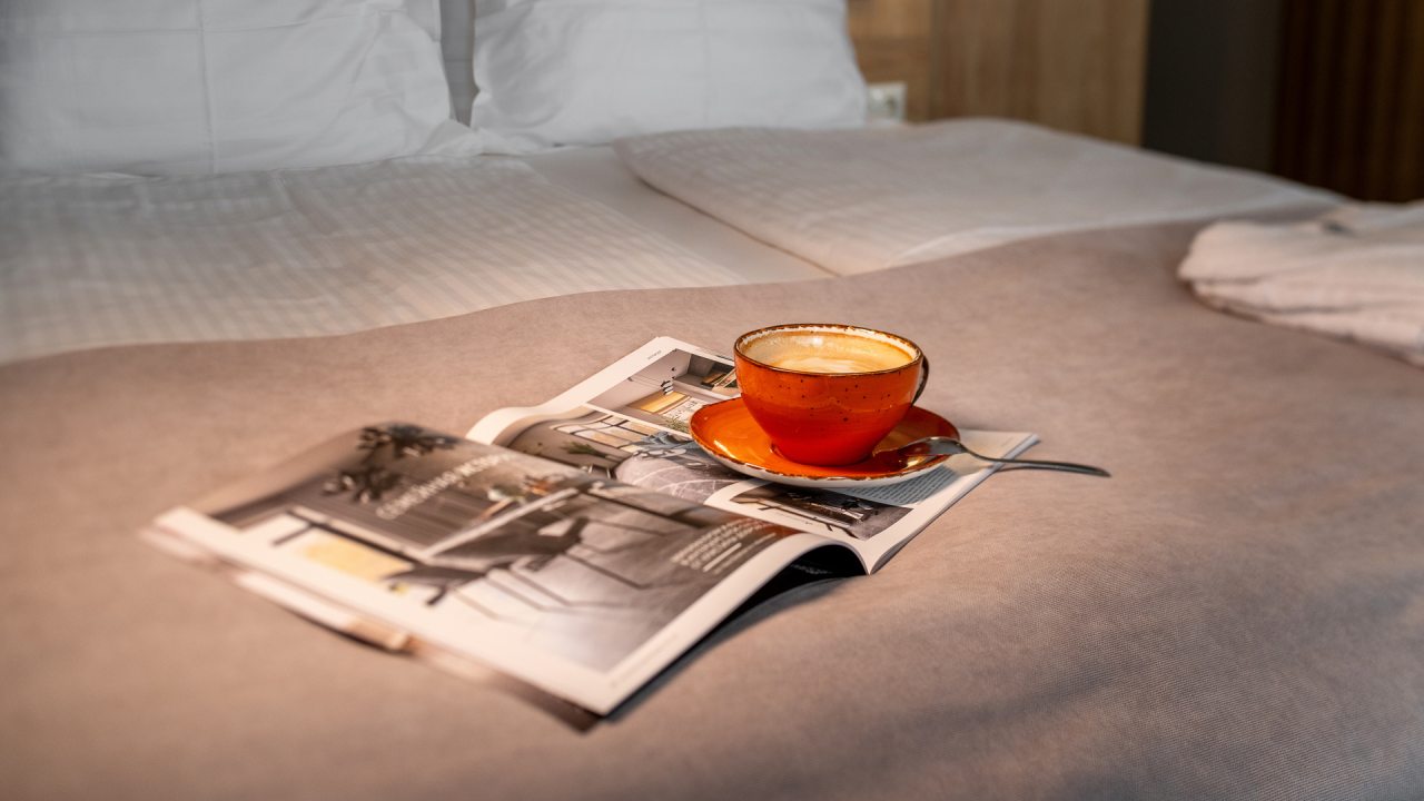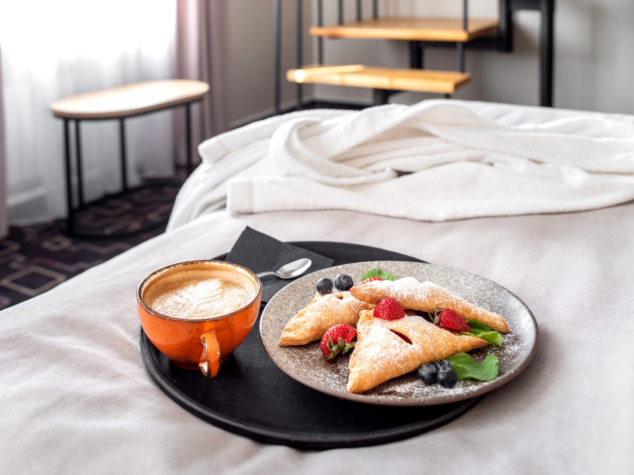 На первом этаже отеля работает ресторан «Enjoy» с блюдами балтийской кухни в современной интерпретации, приготовленными из свежайших местных продуктов. В ресторане вы можете насладиться вкусными и сытными блюдами от шеф-поваров. А для того чтобы вы могли в любое время суток побаловать себя горячим напитком или легким перекусом, внутри номеров предусмотрены электрочайник, холодильник и мини-бар.