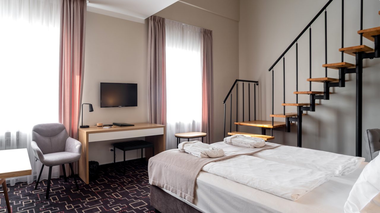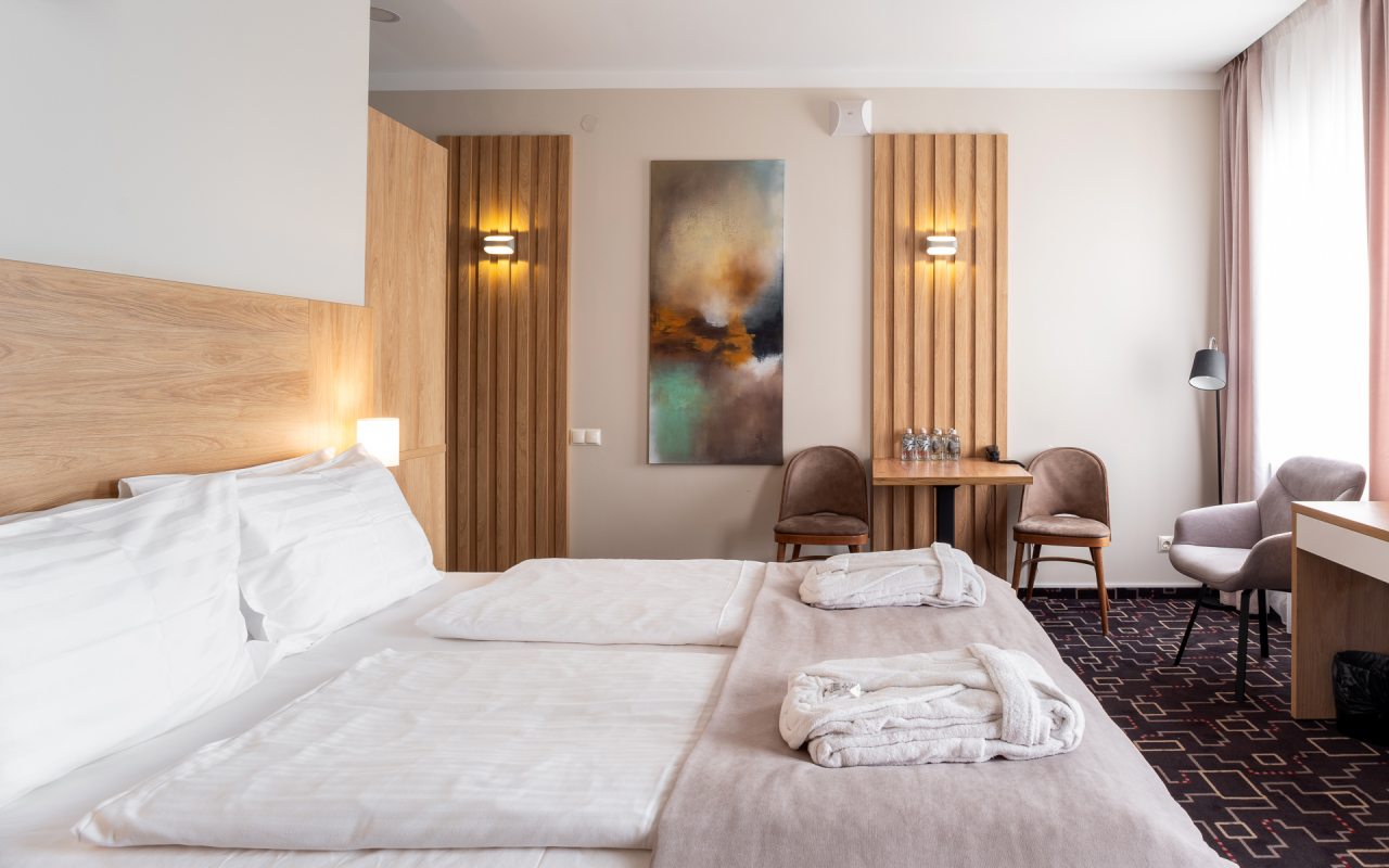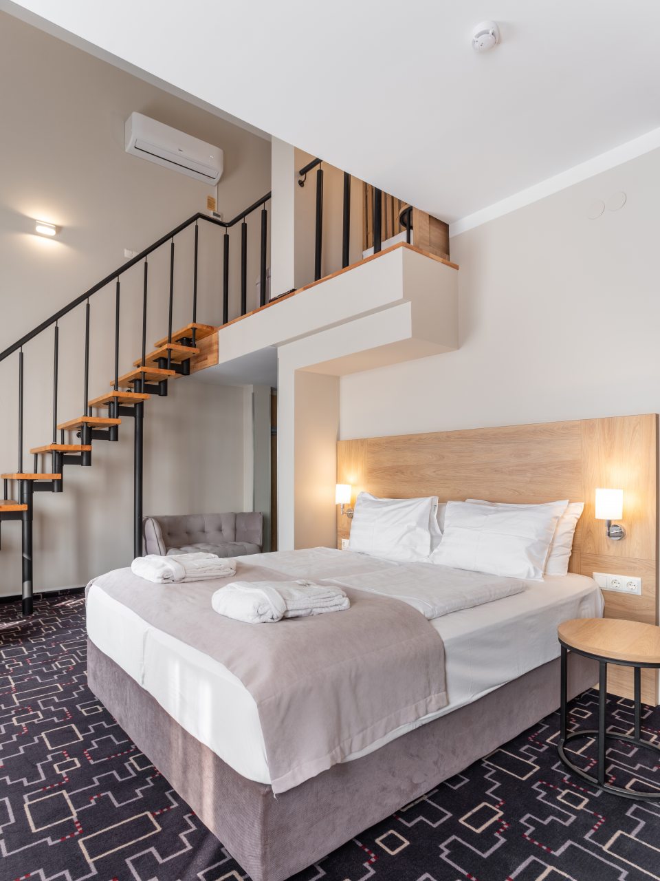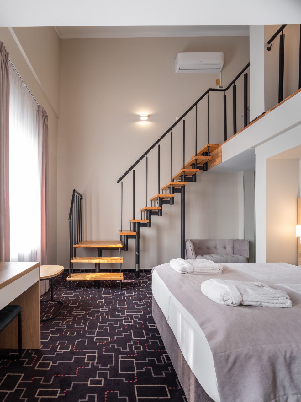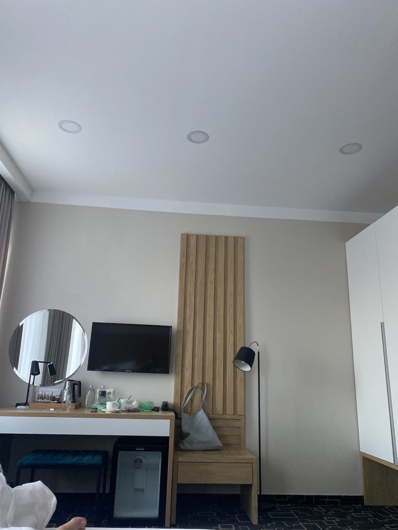 Номер удобный: хороший матрас, постельное, затемняющие шторы, тишина, есть всё необходимое Стильный лаконичный интерьер номеров и всего отеля.