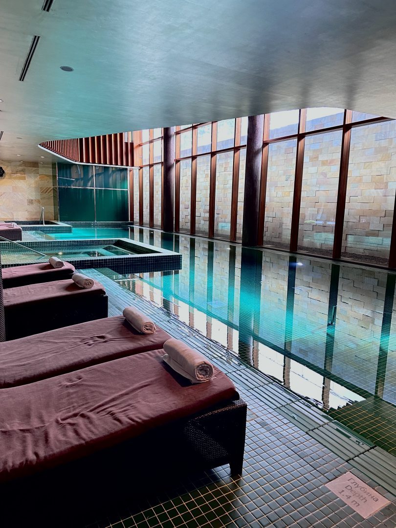 Мой муж организовал нам здесь прекрасные выходные дни. Мы отмечали годовщину нашей свадьбы. Место конечно невероятно красивое, современное и стильное. В номере полулюкс установлена большая кровать. Огромные панорамные окна открывают шикарные обзоры. Есть свой отдельный санузел, тумбы, огромный телевизор. Но отдельная моя любовь – это конечно SPA комплекс. Обожаю!
