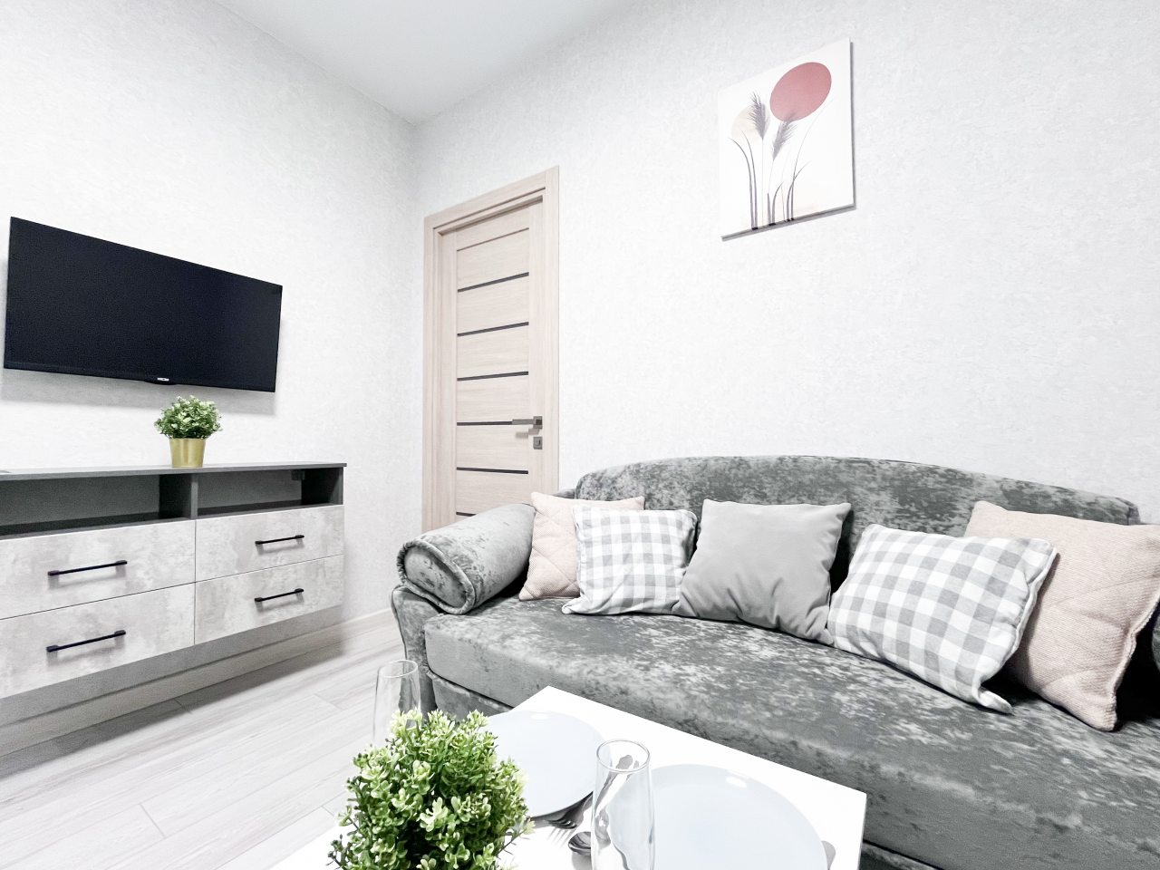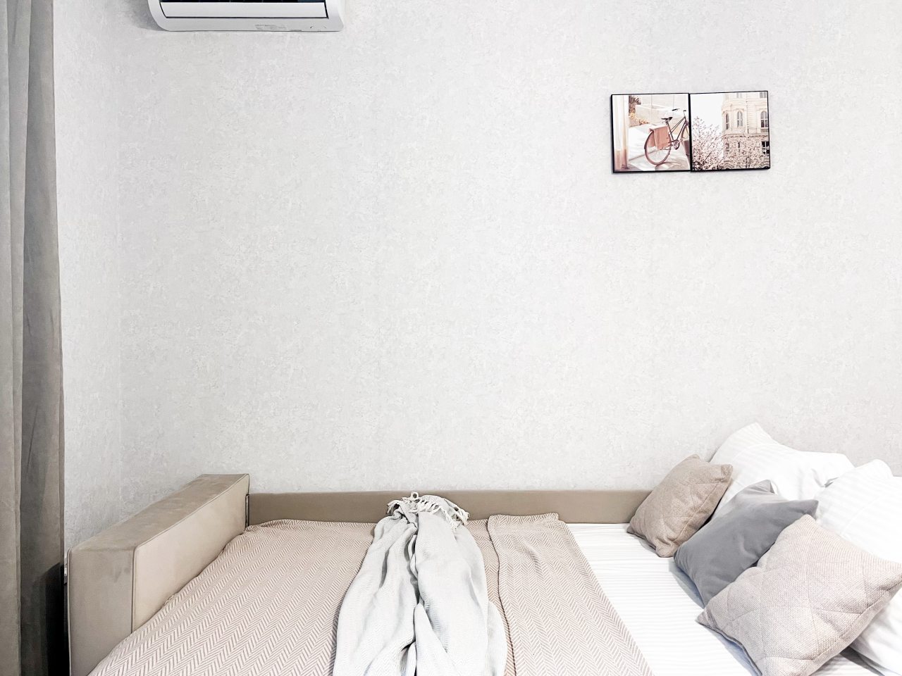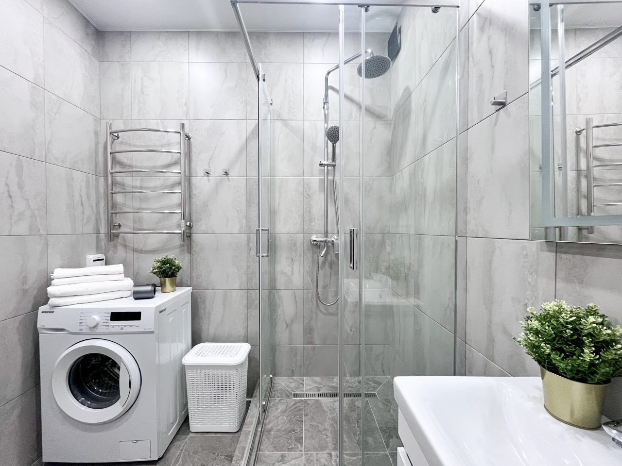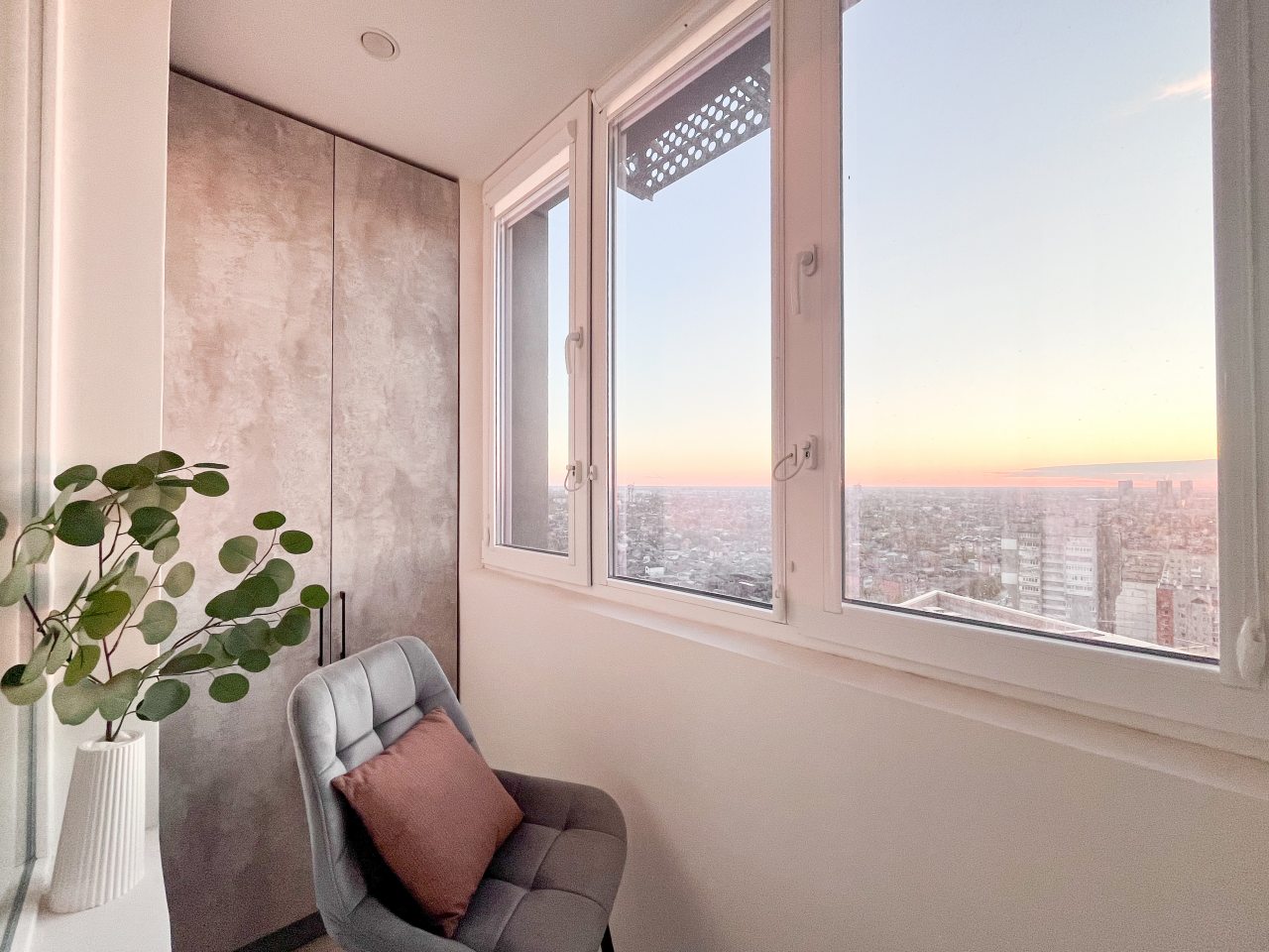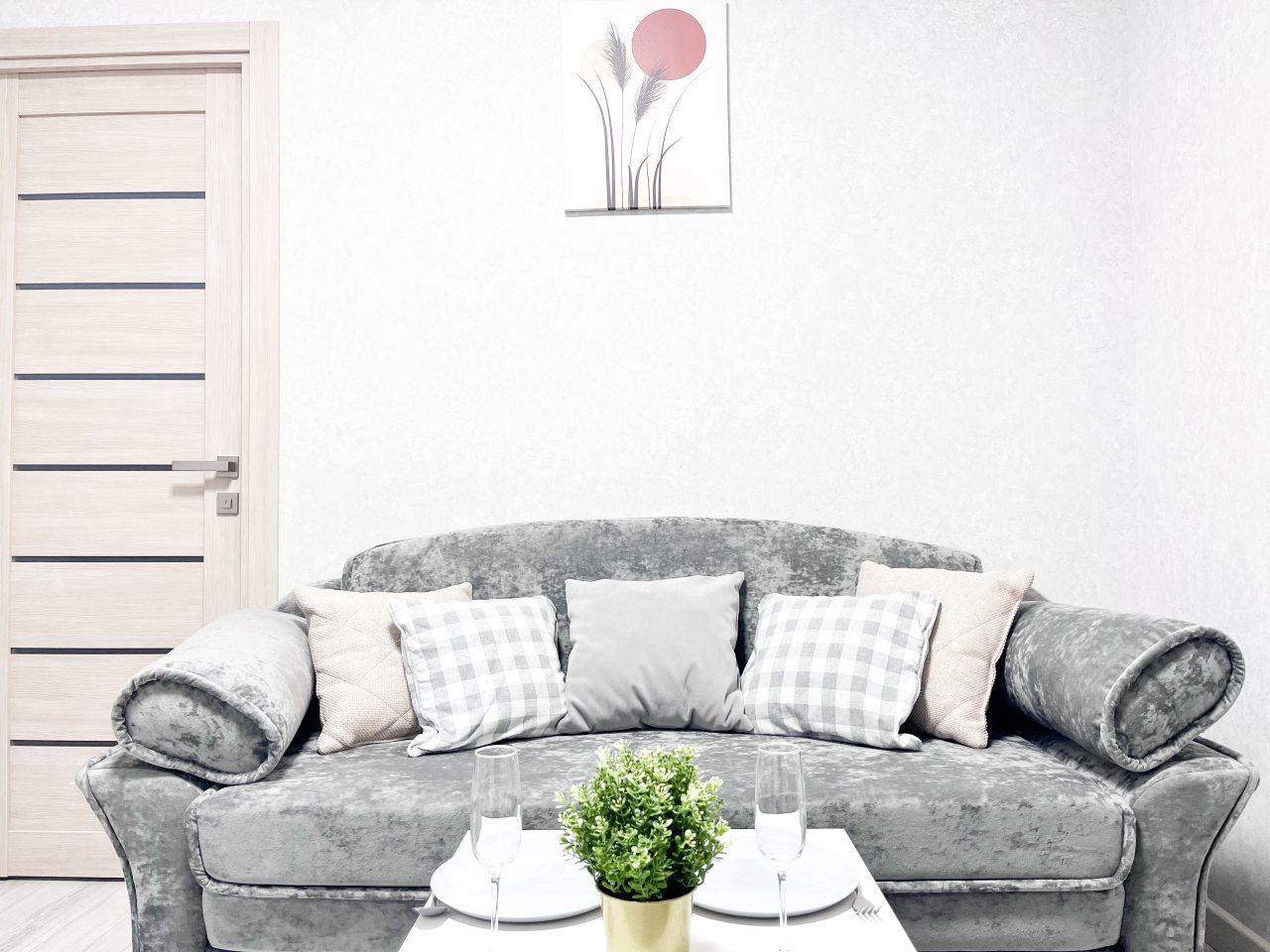 Для размещения предоставляется современная квартира, оснащенная качественной мебелью, техникой и текстилем. Из удобств установлены: телевизор, стиральная машина, кондиционер. Ванная комната оснащена косметическими средствами и набором полотенец. Имеется зона отдыха на балконе, откуда открывается вид на город.