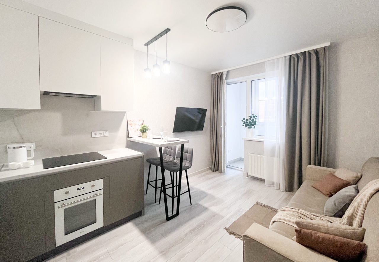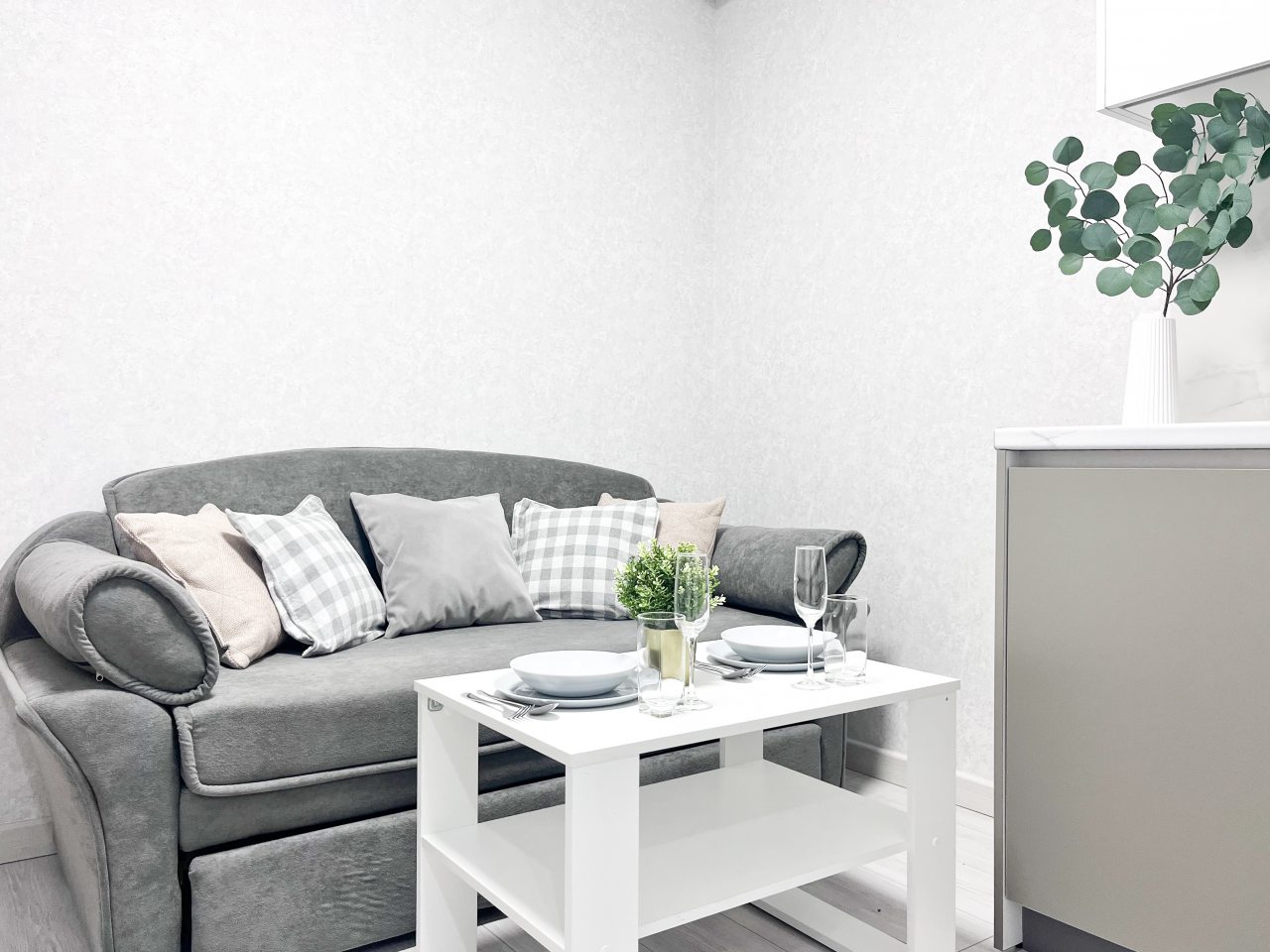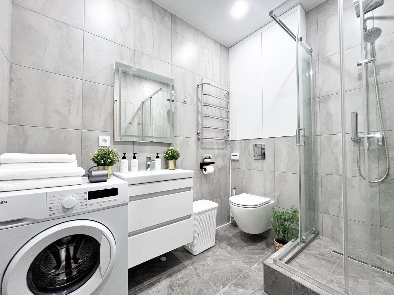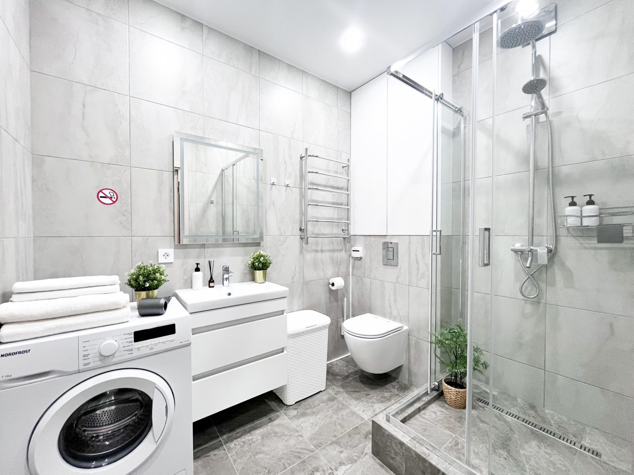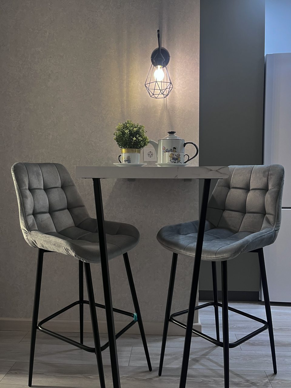 Для размещения предоставляется современная квартира, оснащенная качественной мебелью, техникой и текстилем. Из удобств установлены: телевизор, стиральная машина, кондиционер. Ванная комната оснащена косметическими средствами и набором полотенец. Имеется зона отдыха на балконе, откуда открывается вид на город.