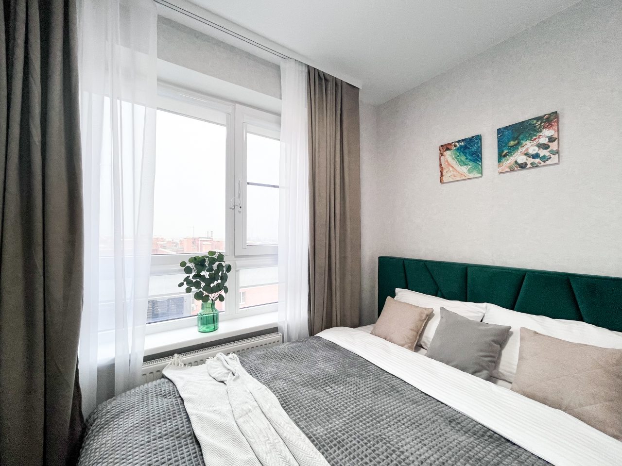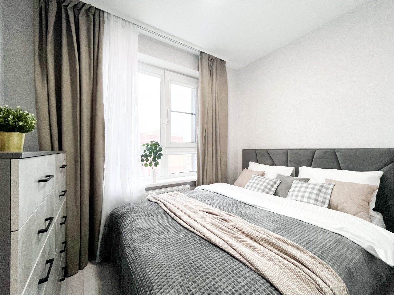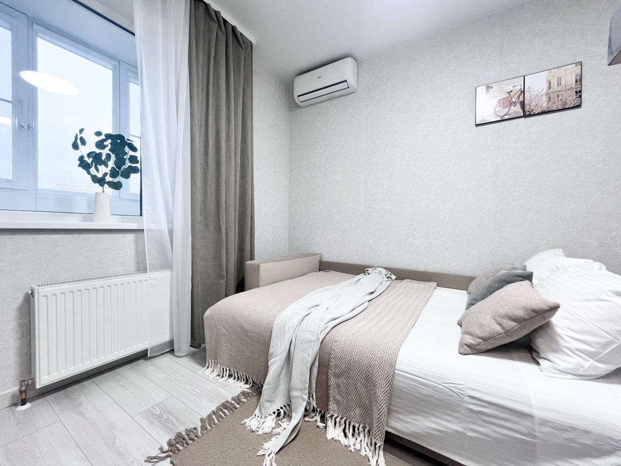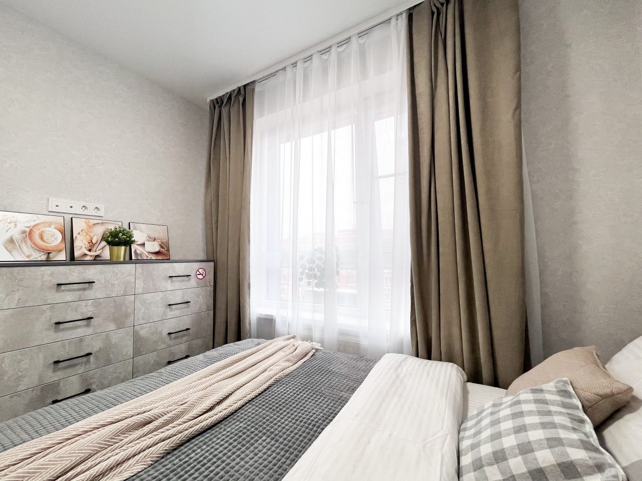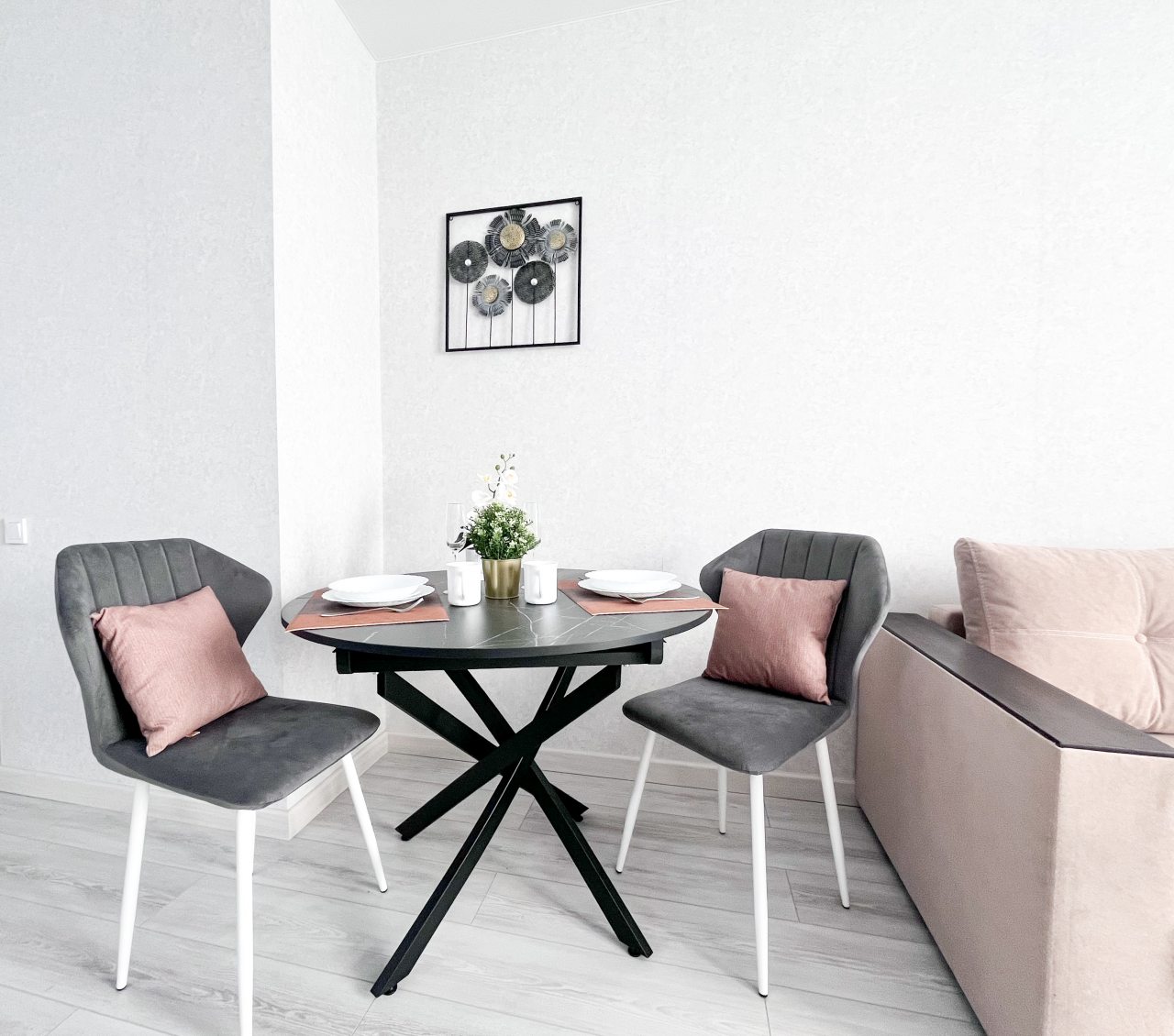 Для размещения предоставляется современная квартира, оснащенная качественной мебелью, техникой и текстилем. Из удобств установлены: телевизор, стиральная машина, кондиционер. Ванная комната оснащена косметическими средствами и набором полотенец. Имеется зона отдыха на балконе, откуда открывается вид на город.