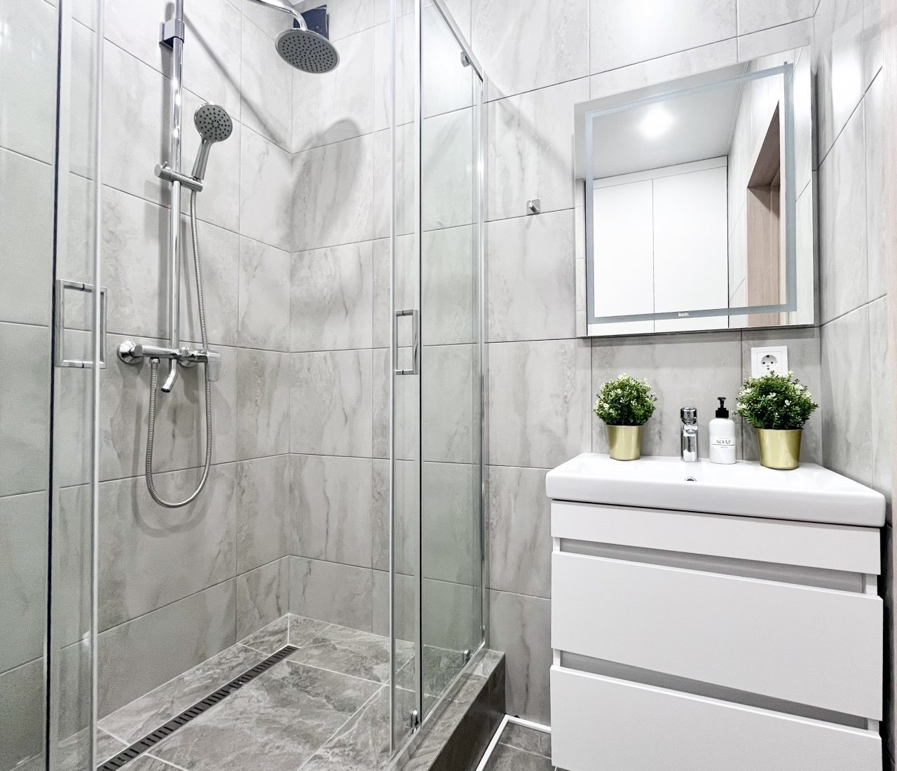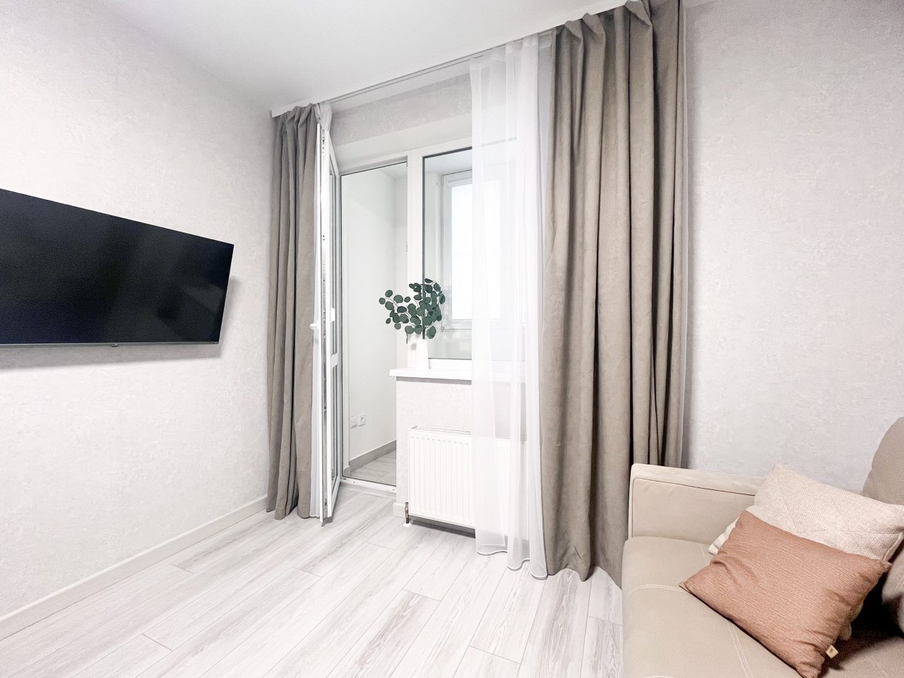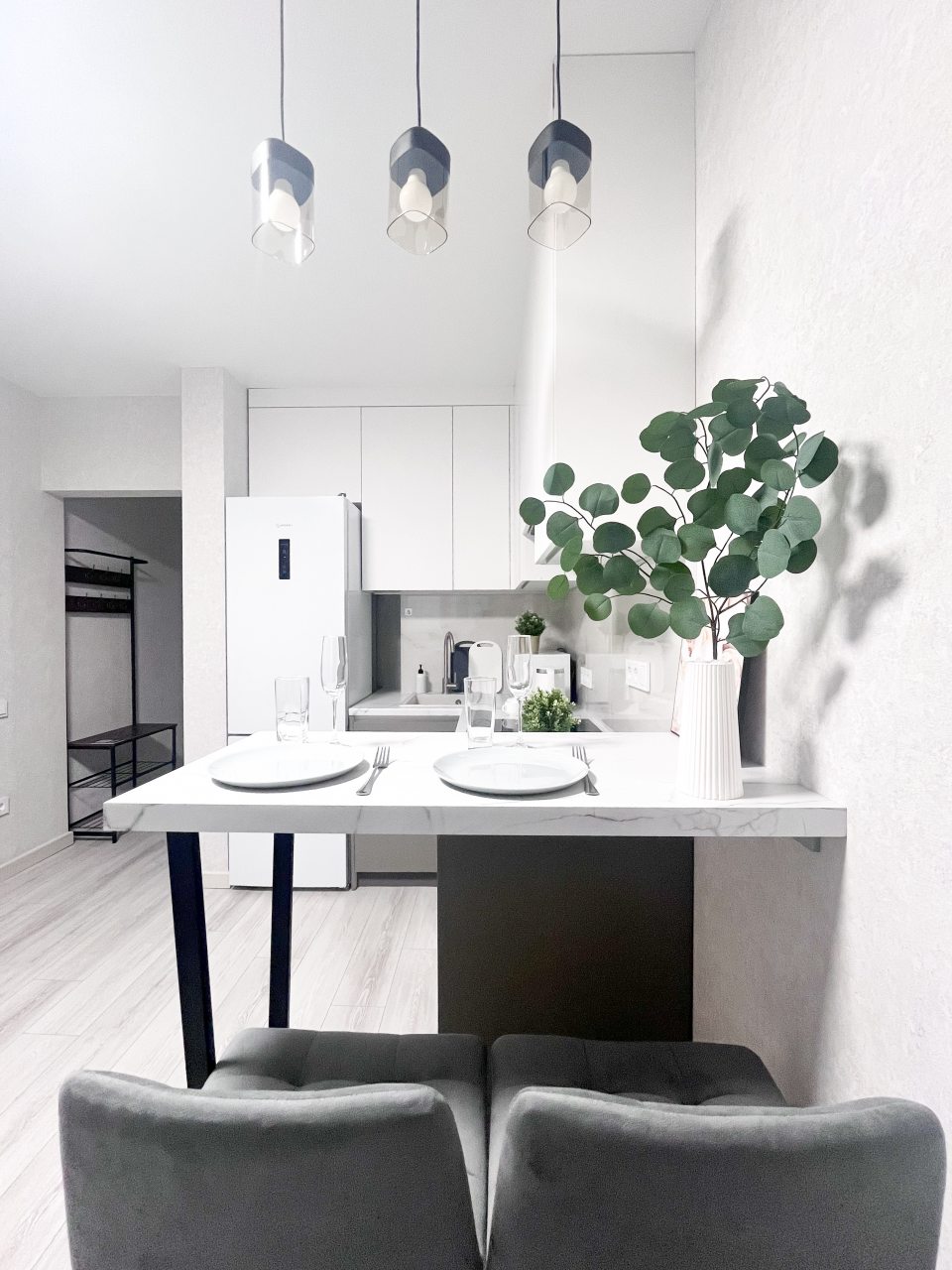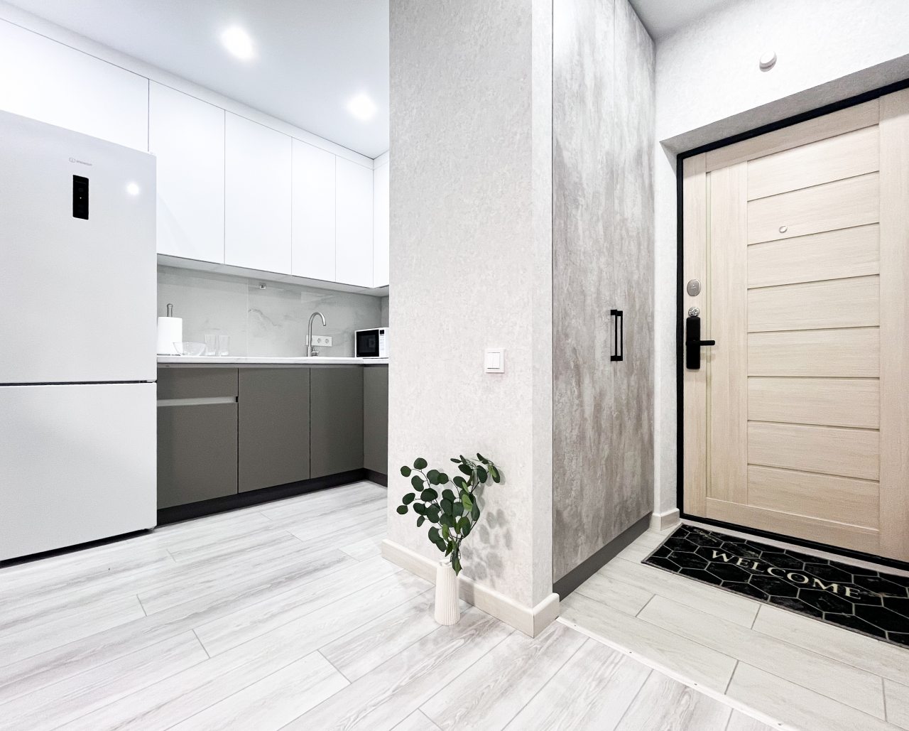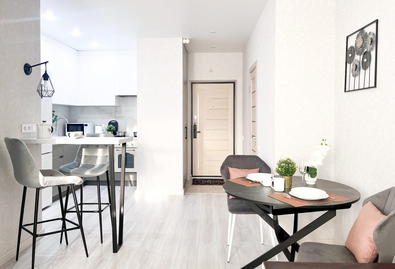 Для размещения предоставляется современная квартира, оснащенная качественной мебелью, техникой и текстилем. Из удобств установлены: телевизор, стиральная машина, кондиционер. Ванная комната оснащена косметическими средствами и набором полотенец. Имеется зона отдыха на балконе, откуда открывается вид на город.
