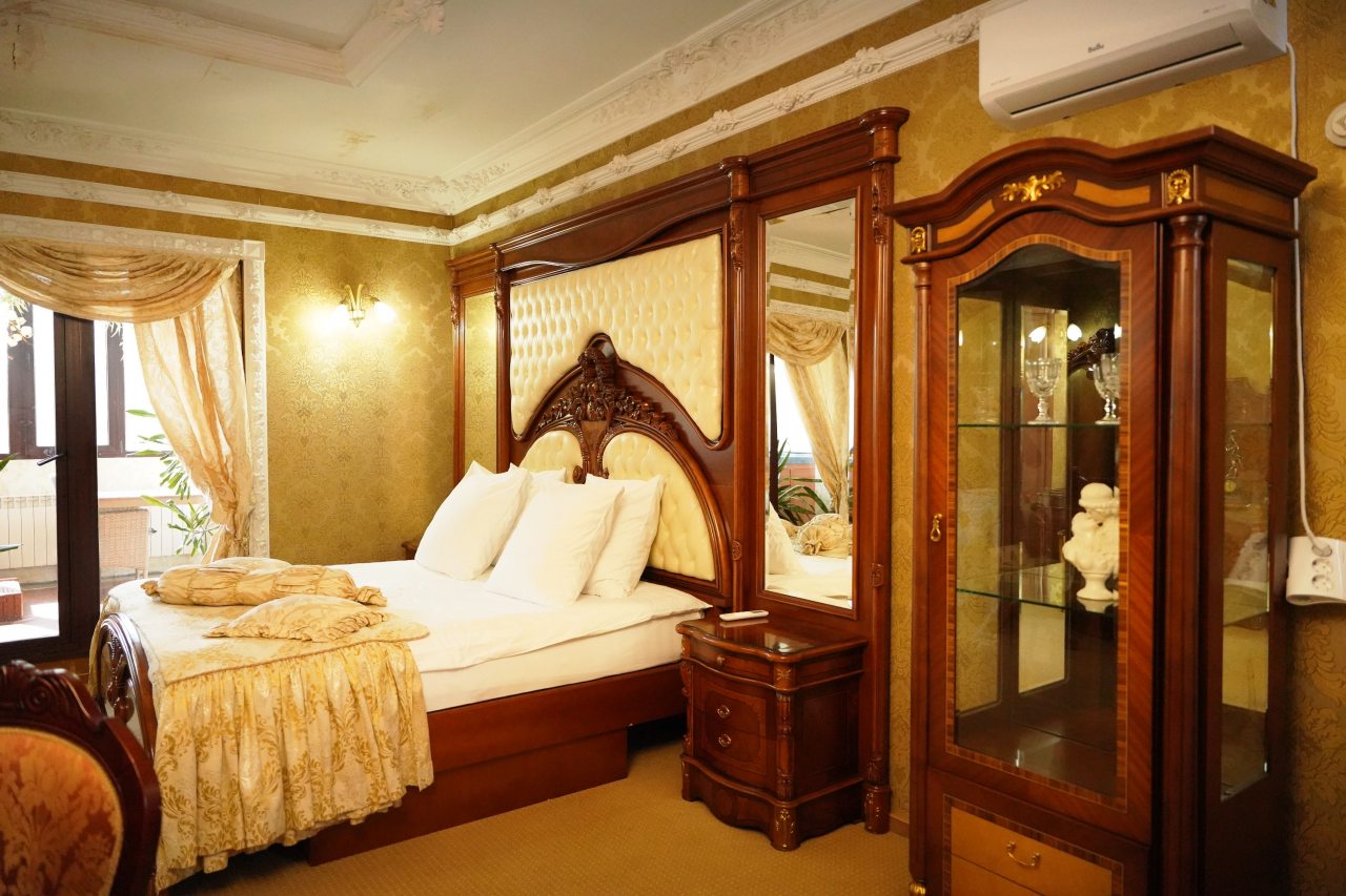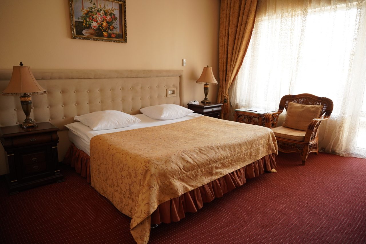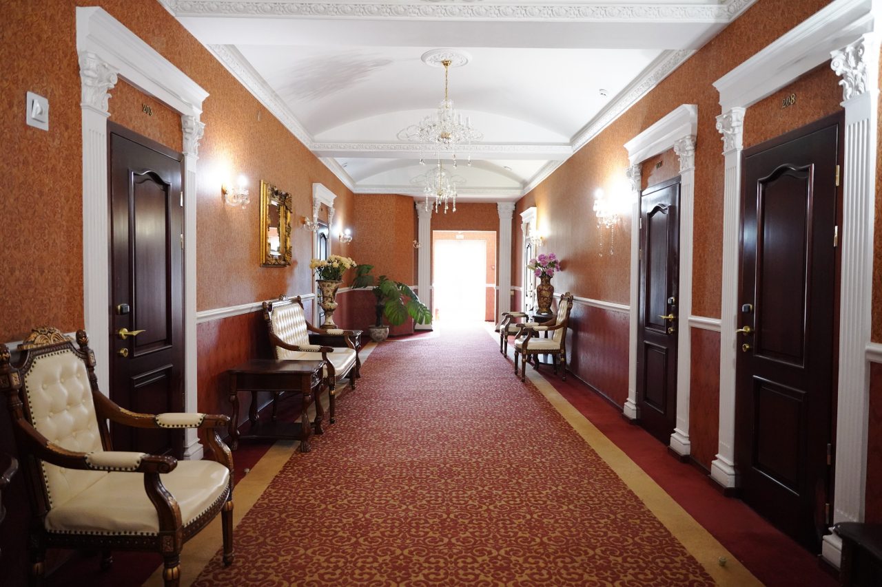 К пребыванию подготовлены номера различных категорий, оформленные в классическом стиле интерьера и оснащенные мебелью из массива и техникой. В санузле установлена современная сантехника.