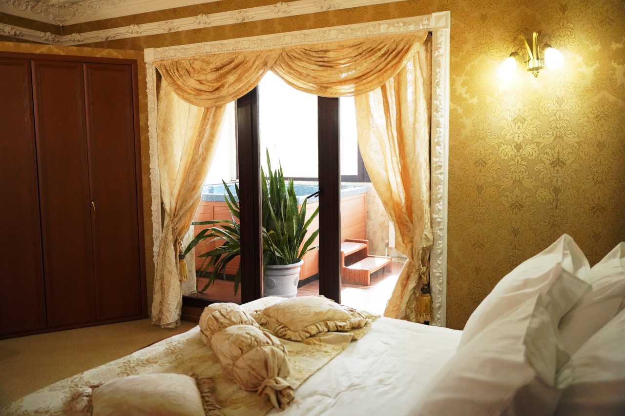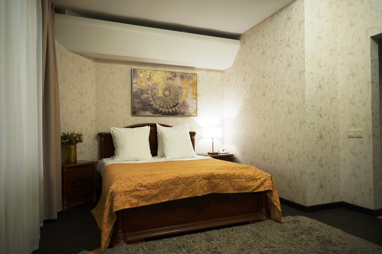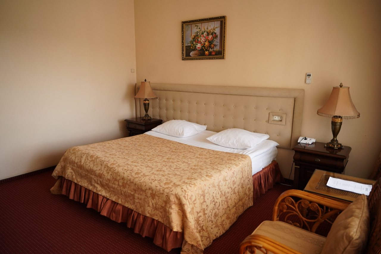 К пребыванию подготовлены номера различных категорий, оформленные в классическом стиле интерьера и оснащенные мебелью из массива и техникой. В санузле установлена современная сантехника.