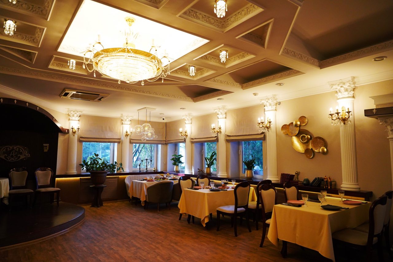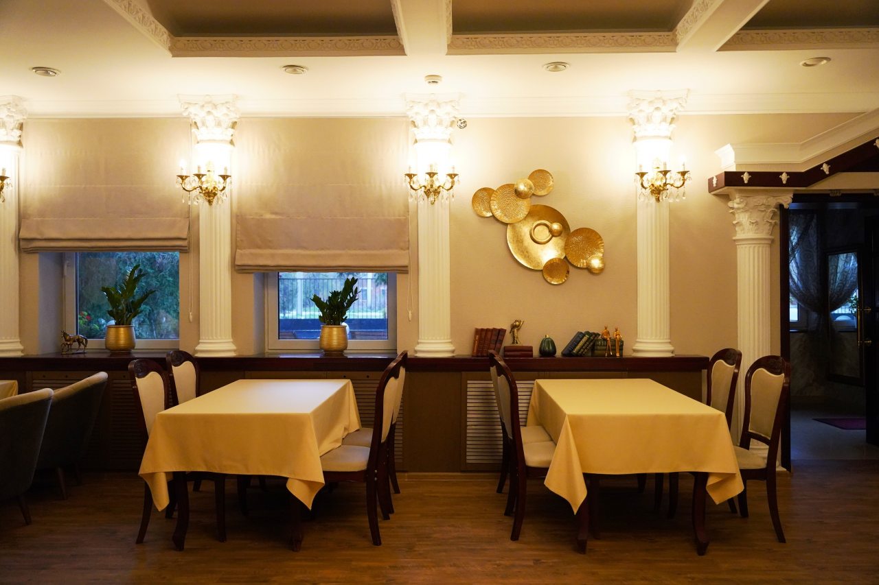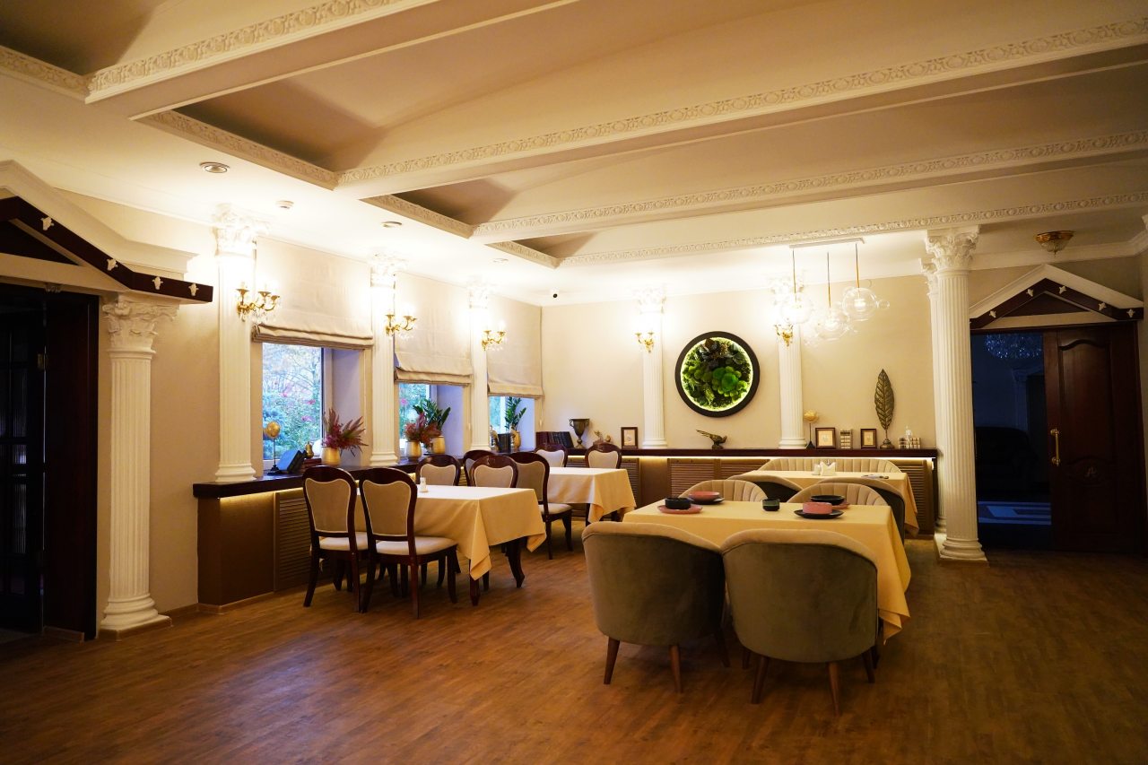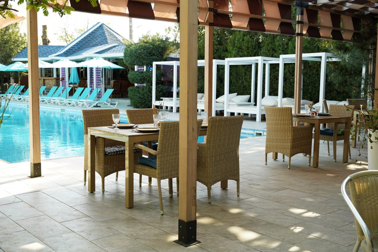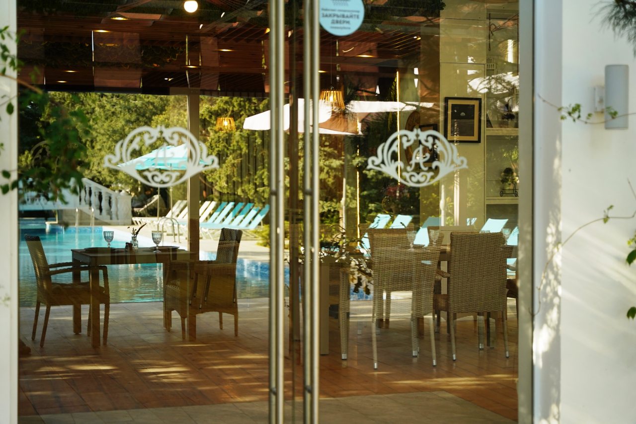 Для проведения приятных трапез есть ресторан с летним баром. Здесь постояльцы могут насладиться блюдами европейской и кавказской кухни, а также провести свое торжественное мероприятие.