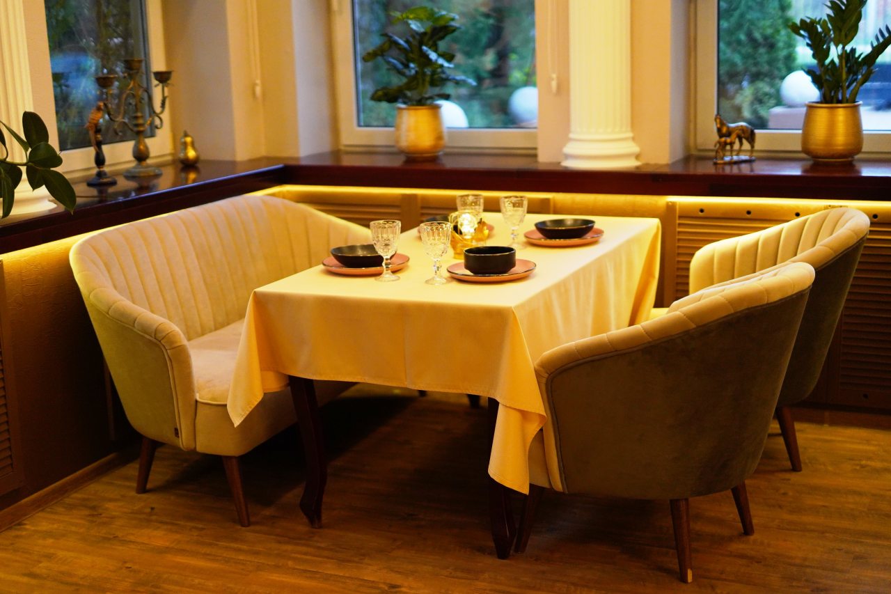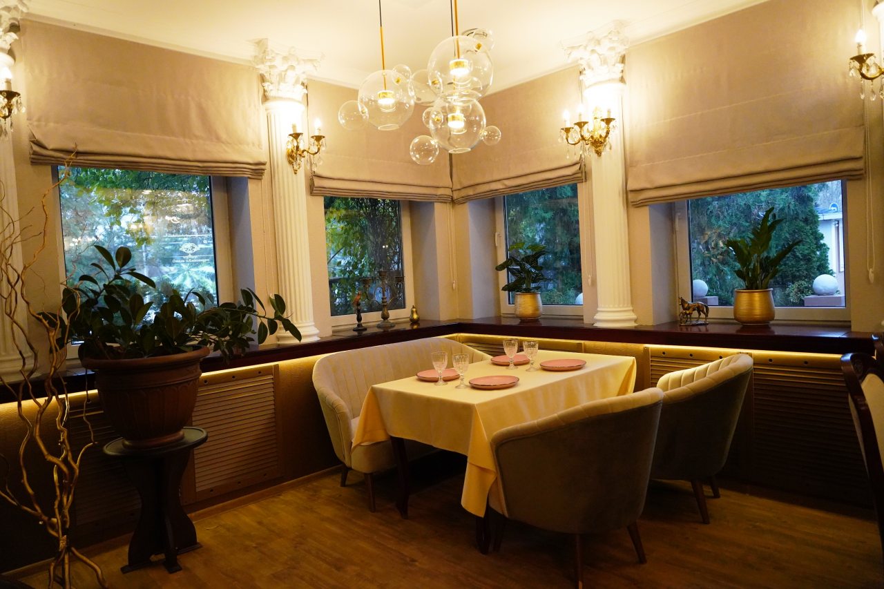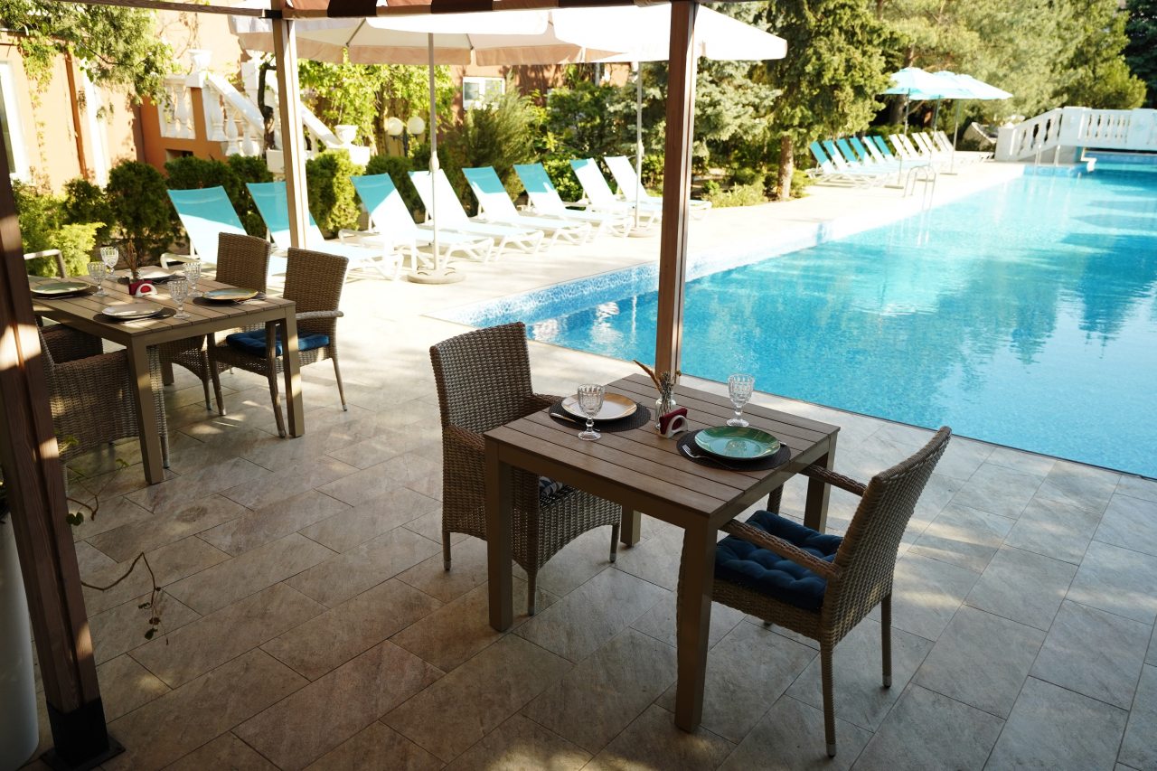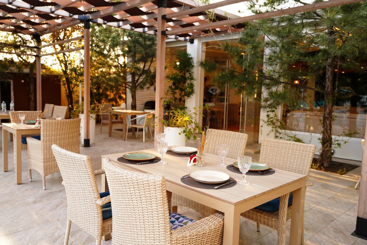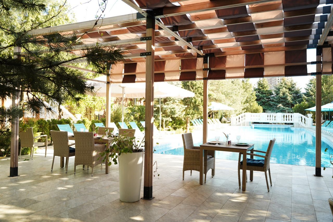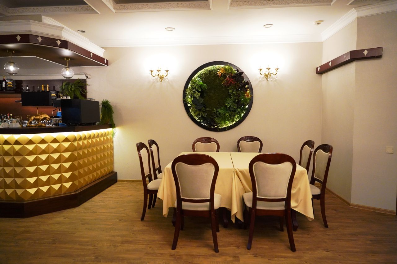 Для проведения приятных трапез есть ресторан с летним баром. Здесь постояльцы могут насладиться блюдами европейской и кавказской кухни, а также провести свое торжественное мероприятие.