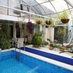 Для досуга и оздоровления предусмотрена баня, финская сауна с теплым бассейном, детская игровая площадка и теплый взрослый и детский подогреваемые бассейны на свежем воздухе. Свободное время можно занять прогулками по ухоженной территории. Хорошее месторасположение позволит добраться в любую локацию без сложностей. Расстояние до аэропорта — 14,6 км, а до железнодорожного вокзала — 2,5 км.