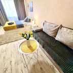 Гостям предлагается разместиться в уютных апартаментах оборудованных двуспальной кроватью со свежим постельным бельем, прикроватной мебелью, телевизором с кабельным телевидением, диваном, шкафом, затемненными шторами. Доступен Wi-Fi. Ванная комната укомплектована необходимой сантехникой.