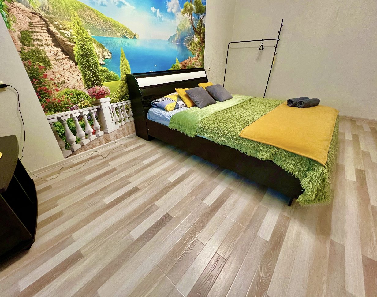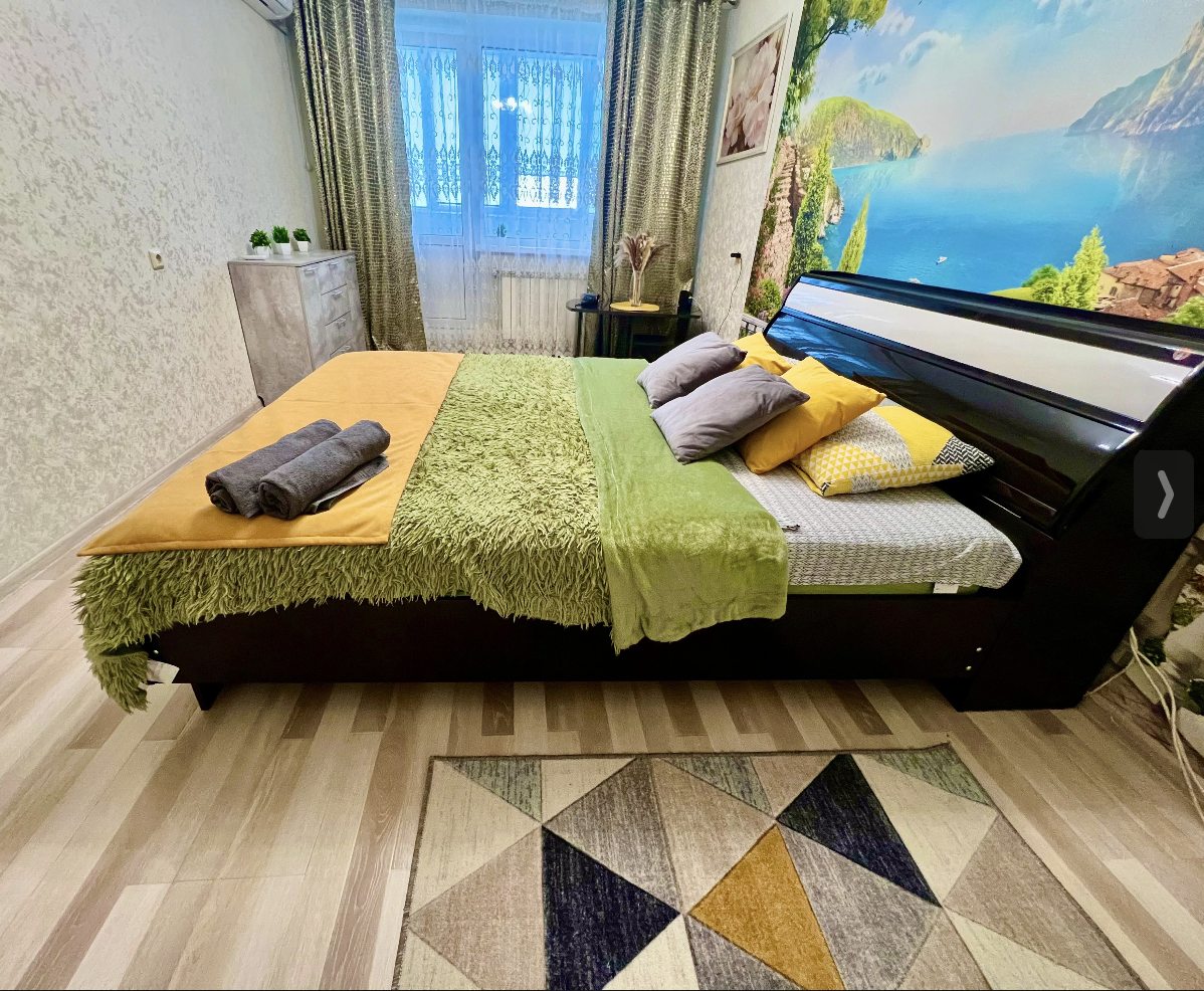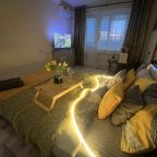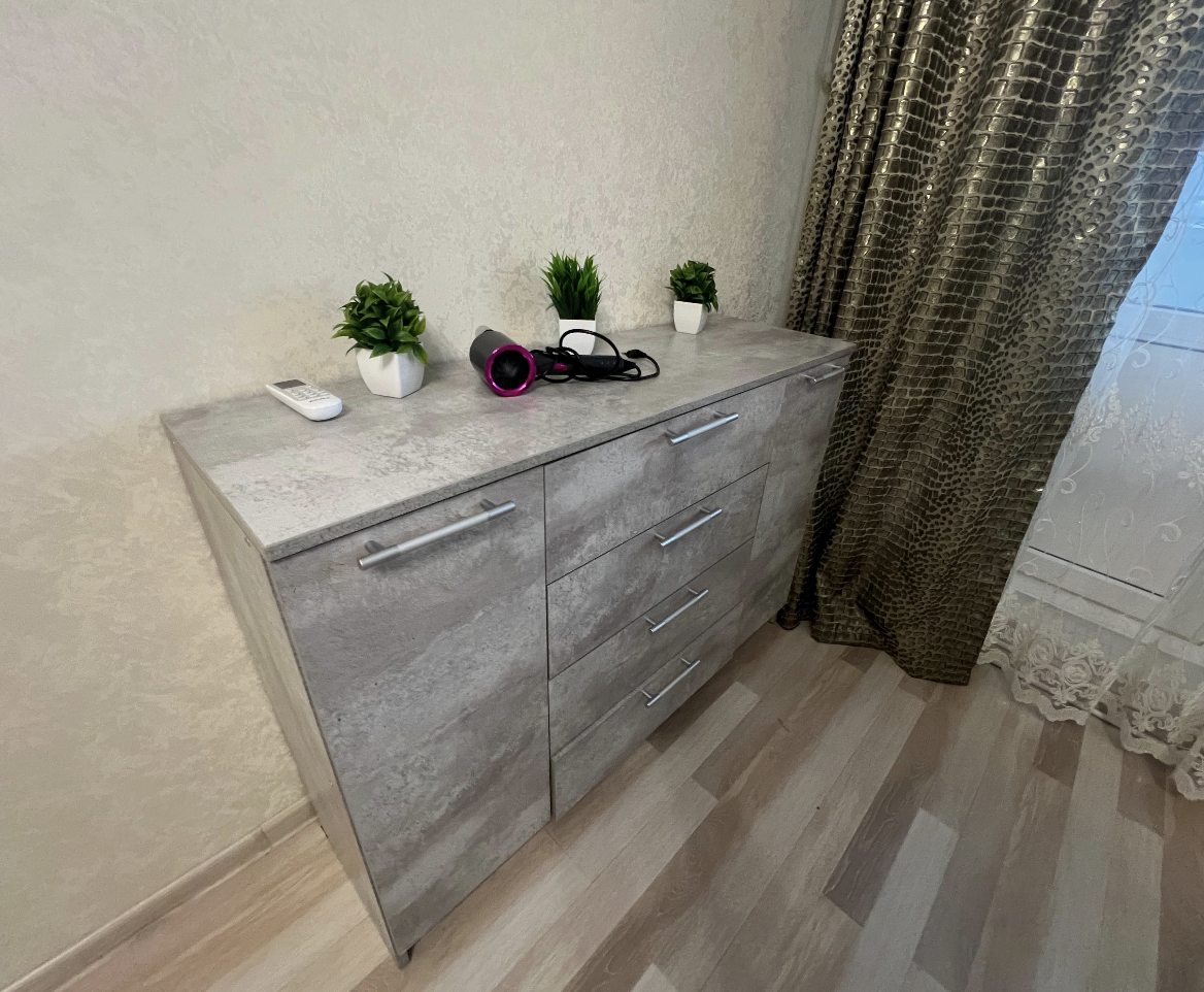 На площади 44 квадратных метров вас ожидают: двуспальная кровать с качественным матрасом, различные сценарии освещения, телевизор, мебель для хранения вещей, ванная комната со стиральной машиной.
