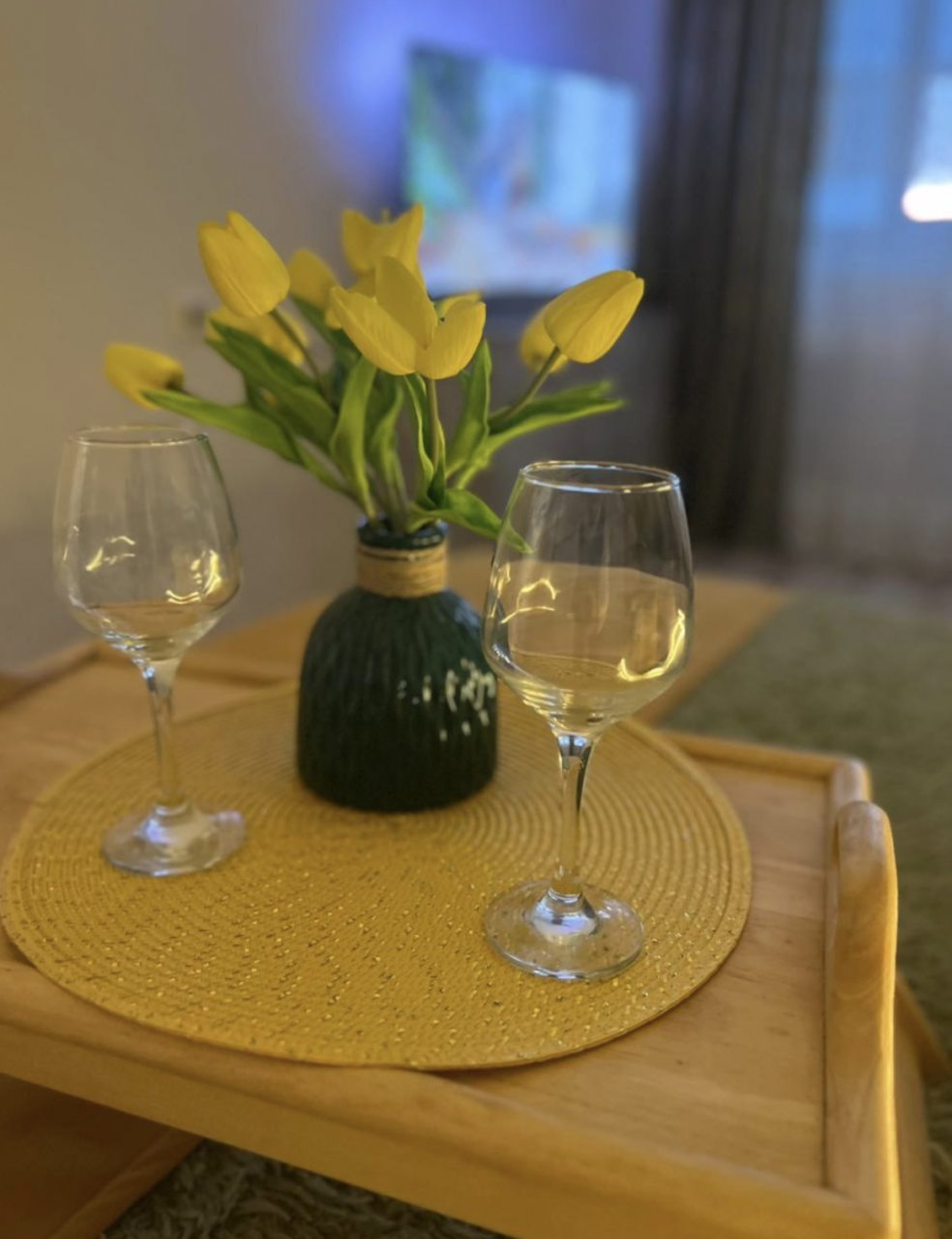 Чтобы вы могли радовать себя приготовлением домашней пищи, кухня оснащена плитой, духовым шкафом, посудой, а также обеденным столом и стульями.
