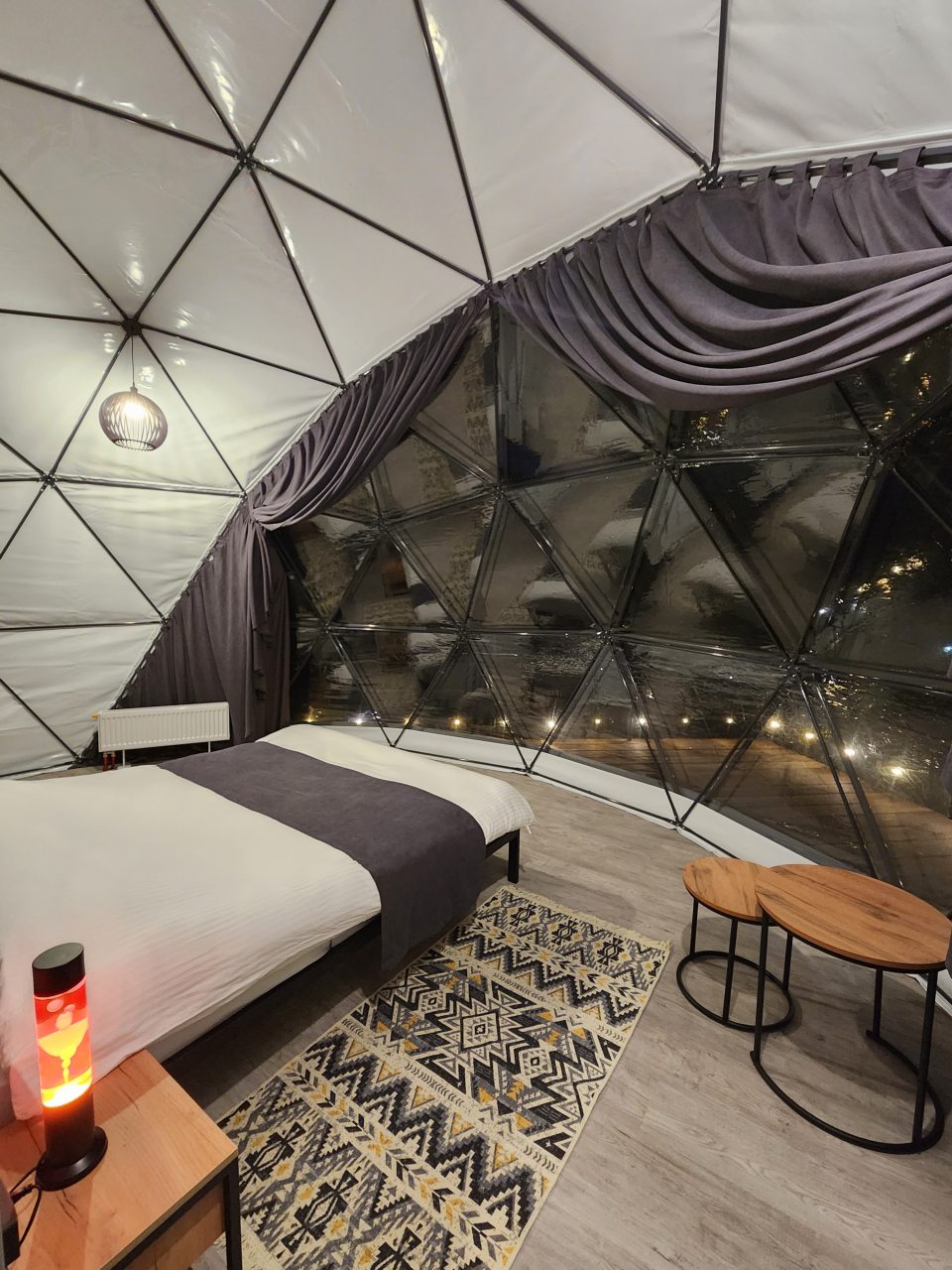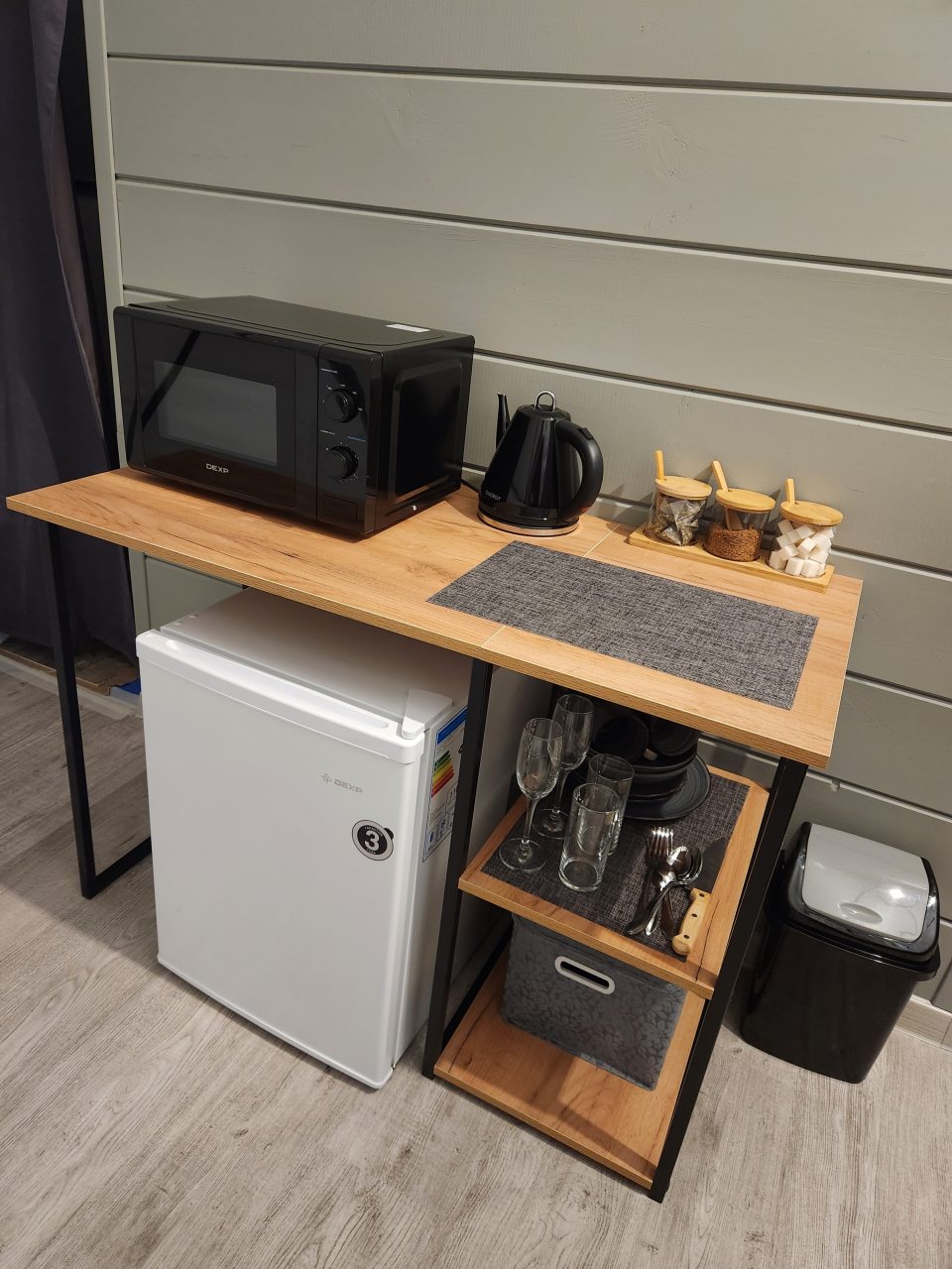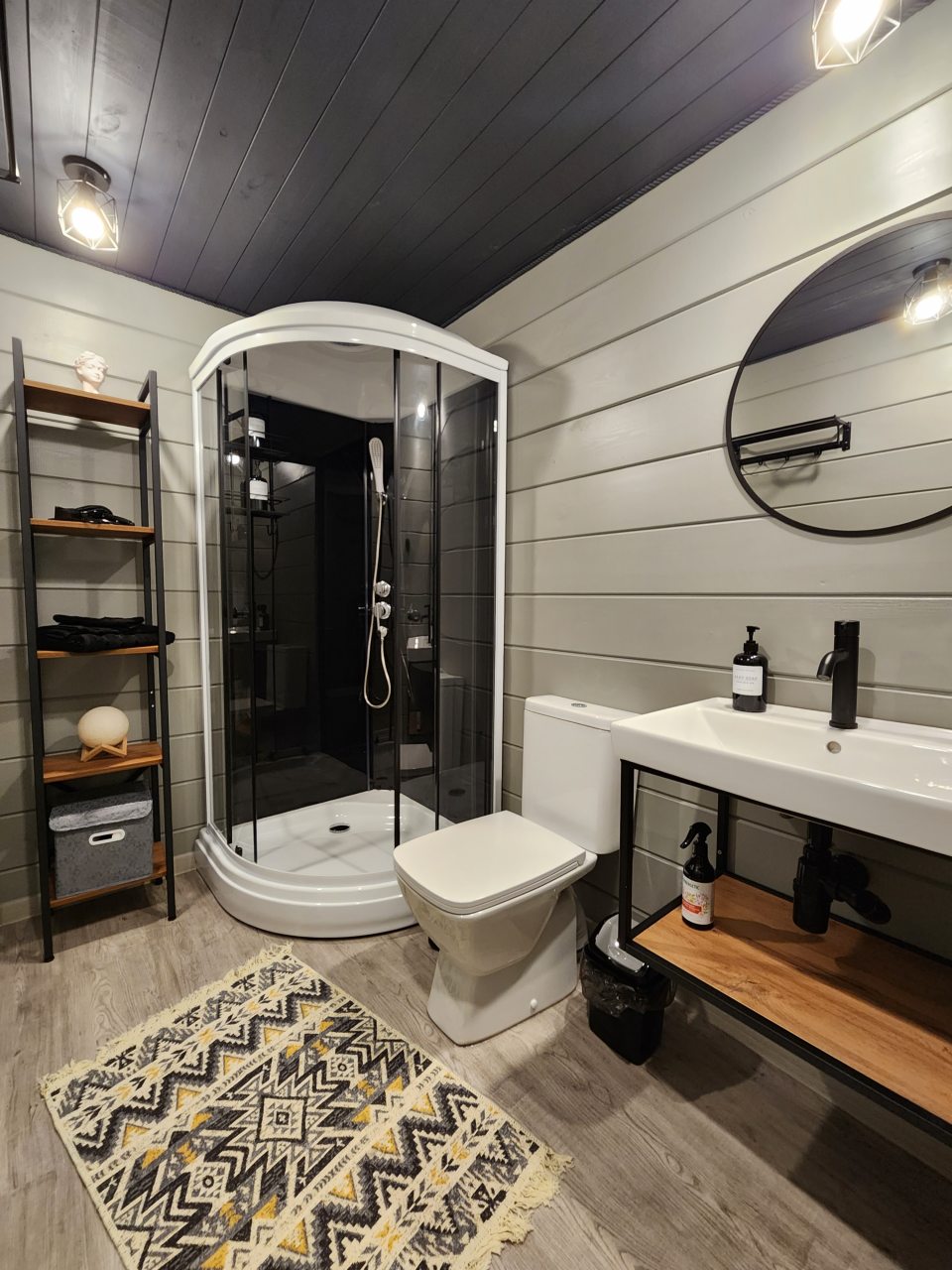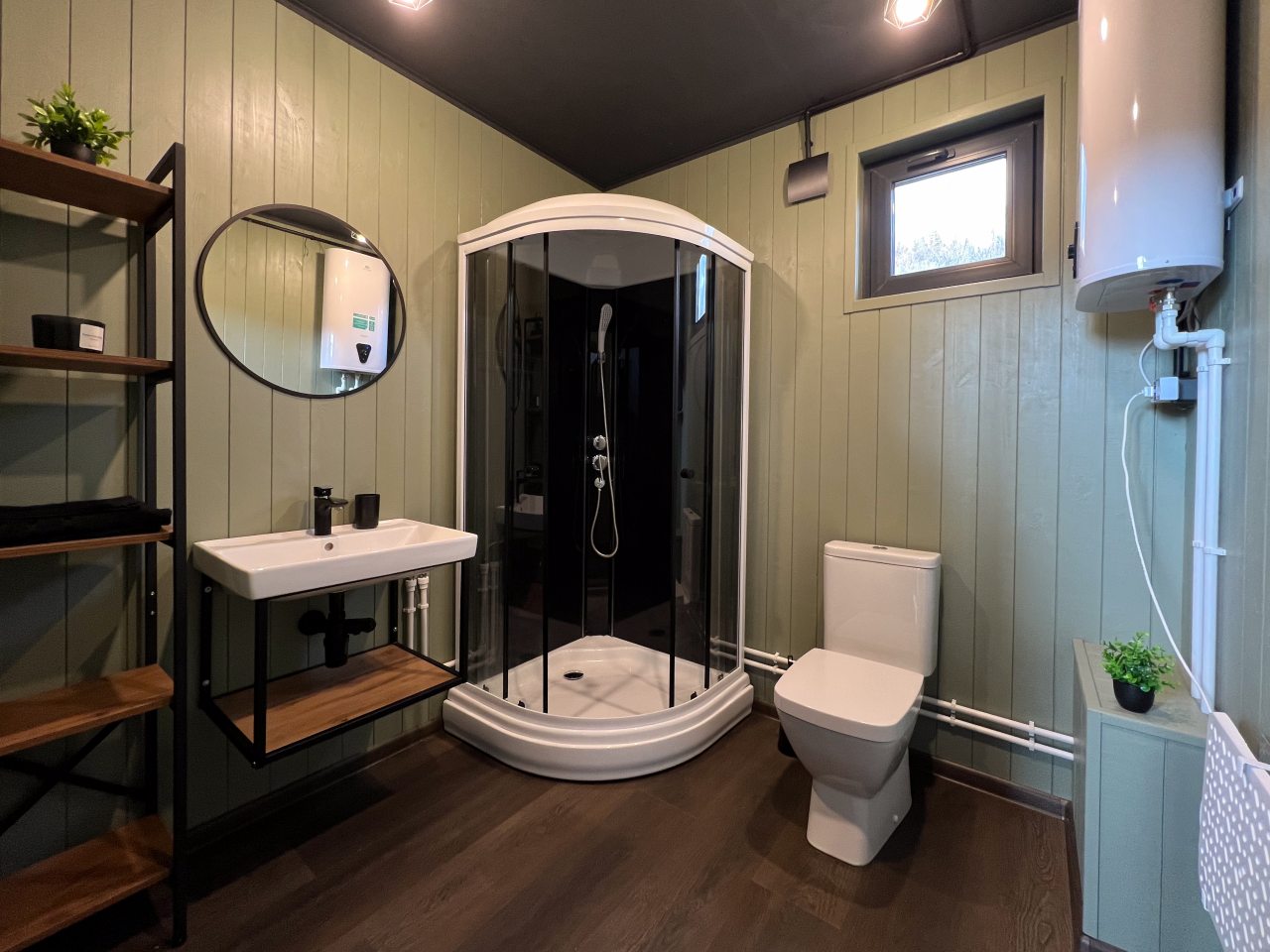 К размещению предлагаются уютные домики, которые оборудованы всем необходимым для комфортабельного проживания и отдыха, например: удобными спальными местами, кухонной зоной, собственной ванной комнатой с современной сантехникой, wi-fi и телевизором.