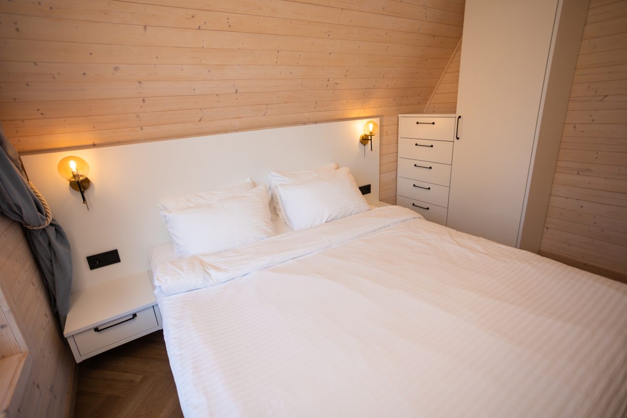Отдохните с комфортом в просторных и современных домиках, которые прекрасно подойдут для семейного отдыха или больших компаний. В вашем распоряжении несколько уютных спален, светлая гостиная и собственная ванная комната, оснащенная всем необходимым: от гигиенических принадлежностей и свежих полотенец до фена и халата. Каждый домик оборудован по последнему слову техники, включая сплит-систему, водонагреватель и высокоскоростной интернет.