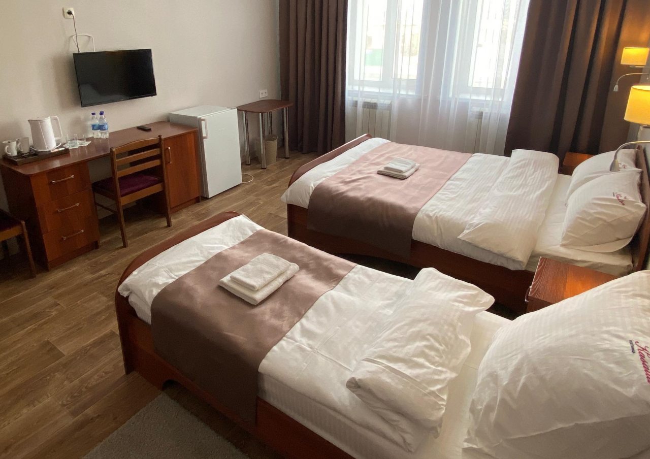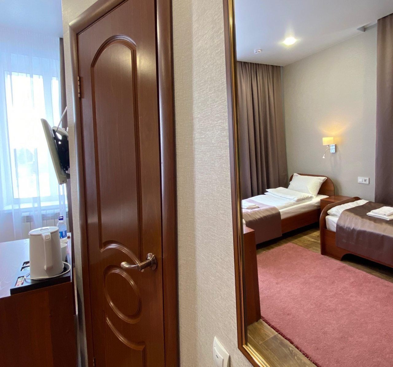 Лично мне тут очень понравилось. Пусть отель и не супер, но тут идеальная чистота, свежий ремонт и вежливые сотрудники. Заселение прошло без проблем. Мы с мужем жили в номере на двоих. Номер с двумя кроватями, телевизором, холодильником, собственной ванной комнатой. Цена отличная.