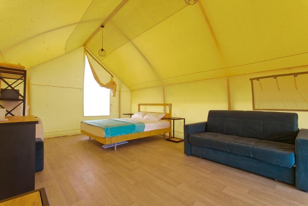 Оптимальное размещение мебели в шатре, дизайнерское решение радует глаз, располагает к релаксу. Проживание превосходное, негатива не нашли, остались только хорошие воспоминания. Заслуживает внимания высококачественное постельное белье и чистые гигиенические условия.