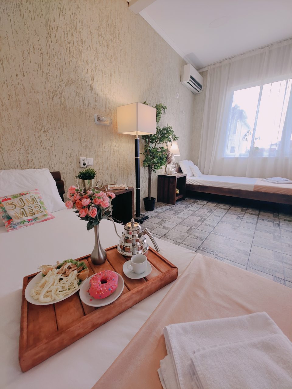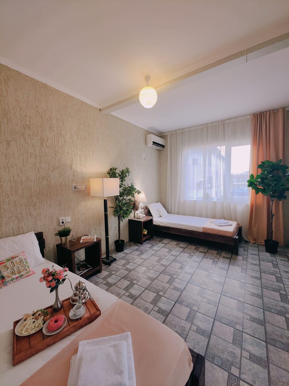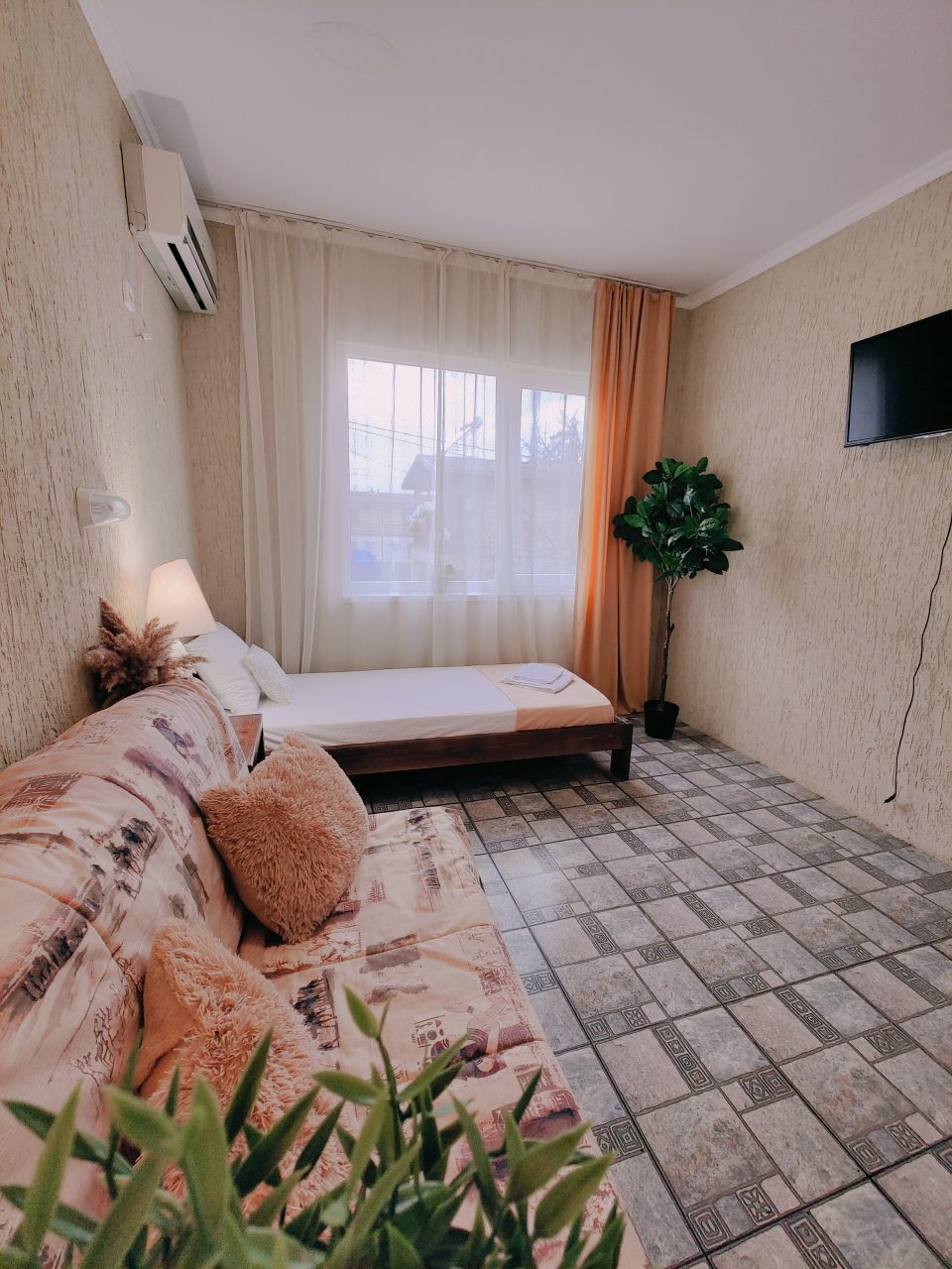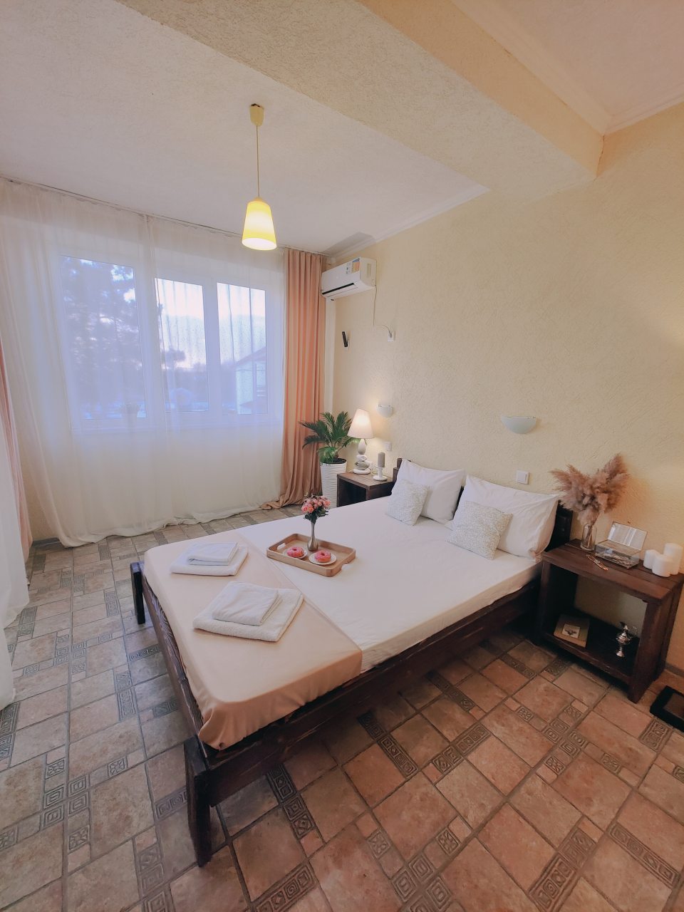 К размещению представлены просторные номера различной вместимости и уровня комфорта. Среди удобств кондиционер, телевизор, бесплатный Wi-Fi, место для хранения вещей и ванная комната.