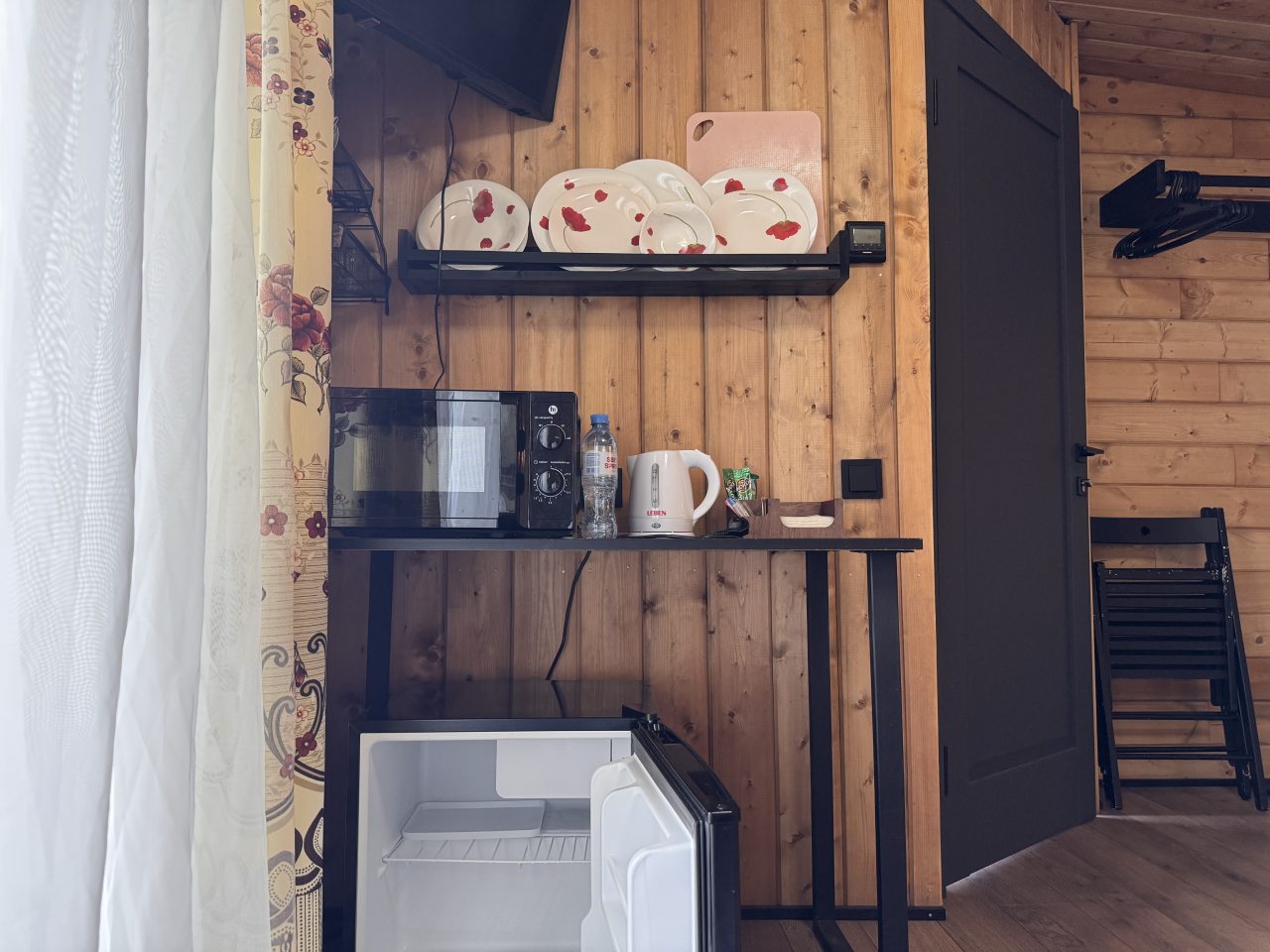 В любой момент вы сможете организовать перекус, поскольку дома укомплектованы свч-печью, электрическим чайником, мини-холодильником и посудой. Дополнительно установлены мангалы для приготовления любимых блюд на свежем воздухе.