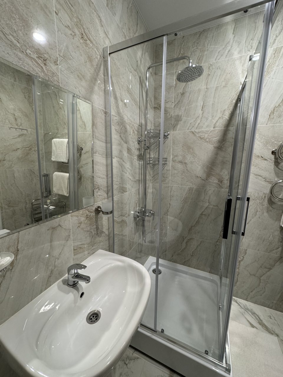 На ужин пришли мужчины с литровой бутылкой алкоголя и соответственно после её употребления под такую вкусную закуску, они начали очень громко общаться в том числе иногда и с нецензурными выражениями, несмотря на то, что рядом были дети на ужине... А потом ещё оказалось, что эти мужчины, употребившие алкоголь, проживают в номере над нами, о чём мы узнали по их очень шумному поведению в районе 23.00 и в результате чего мы выяснили, что слышимость между этажами ОЧЕНЬ хорошая, то есть звукоизоляция отсутствует. Пришлось попросить их утихомириться, после чего мужики успокоились. С коридора из-за двери тоже слышимость отличная и если кто то вышел из своего номера и общается в коридоре, то вы его в номере прекрасно слышите и слышите все его передвижения по коридору...