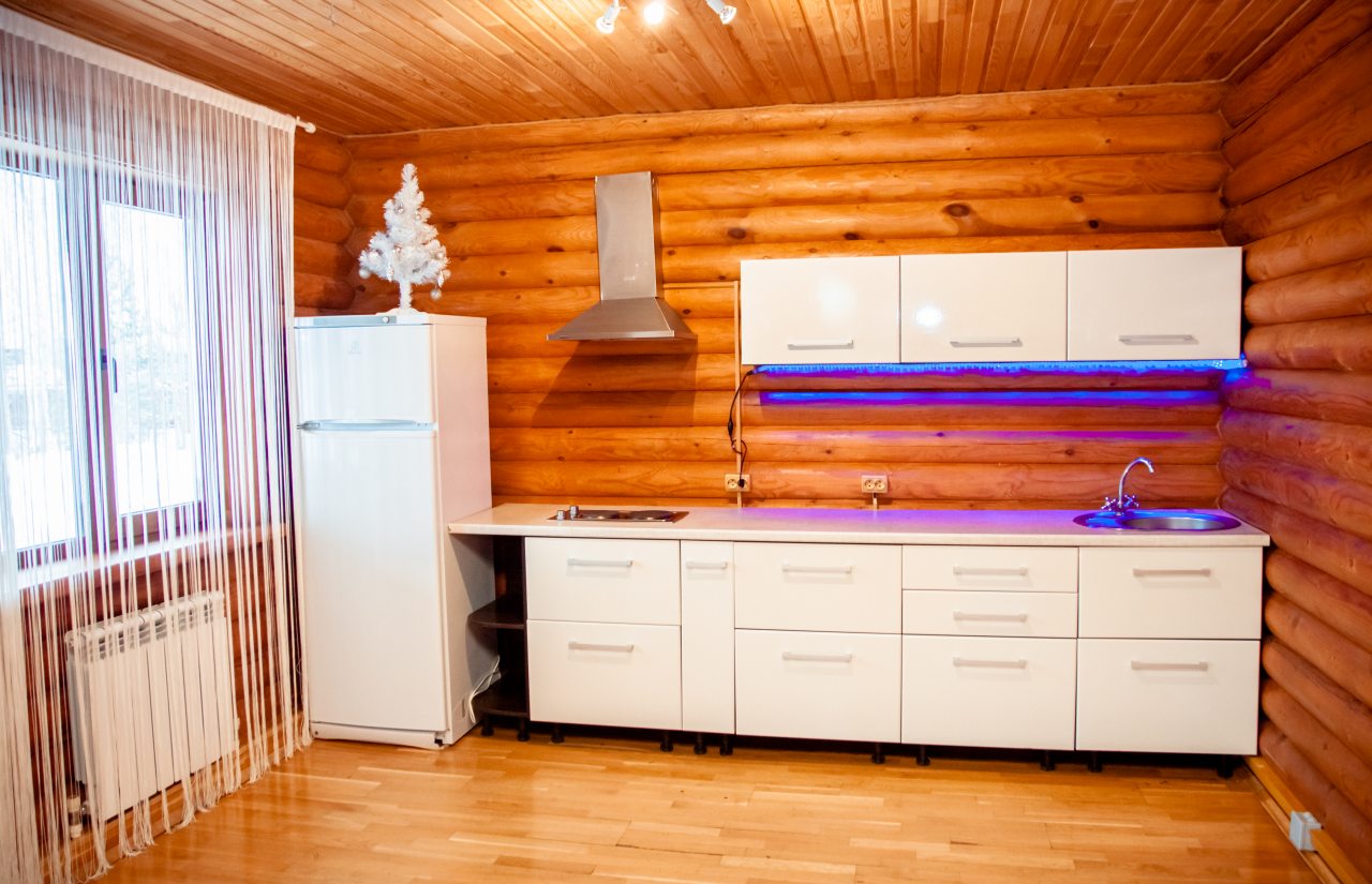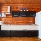 Готовить любимые напитки и блюда можно на кухне, оборудованной чайником, плитой с вытяжкой, холодильником, обеденной зоной.