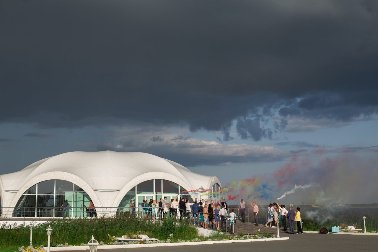 На территории есть 2 шатра: на зеленом газоне и на воде. Они отлично подойдут для мероприятия с большим количеством приглашенных лиц.