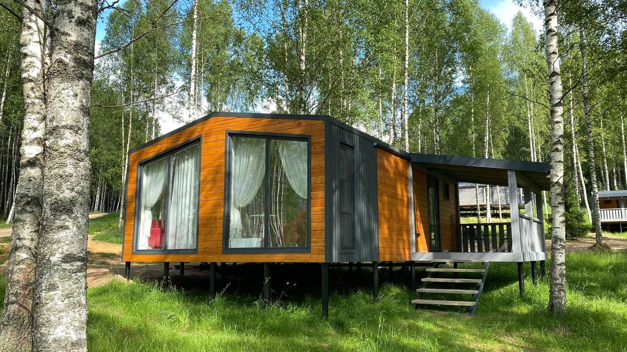На территории с лесным массивом эргономично расположились уютные домики, спрятанные от посторонних глаз. Для размещения представлены различные категории, оформленные в современном «Эко» стиле. К услугам гостей: удобные спальные места, качественная мебель и техника, индивидуальные санузлы. Доступна бесплатная сеть Wi-Fi.