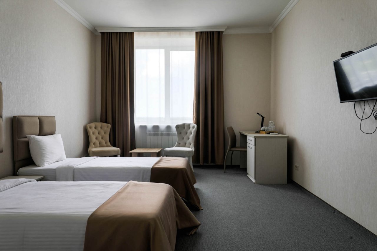 Номер чистый, уютный. Само здание гостиницы относительно новое, красиво отделанное внутри. Сан. узел - на хорошем уровне (душевая кабина). У отеля своя территория с беседками и пр... Персонал клиентоориентированный, нет претензий, всё на хорошем уровне.