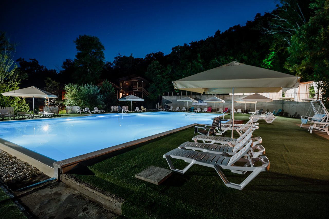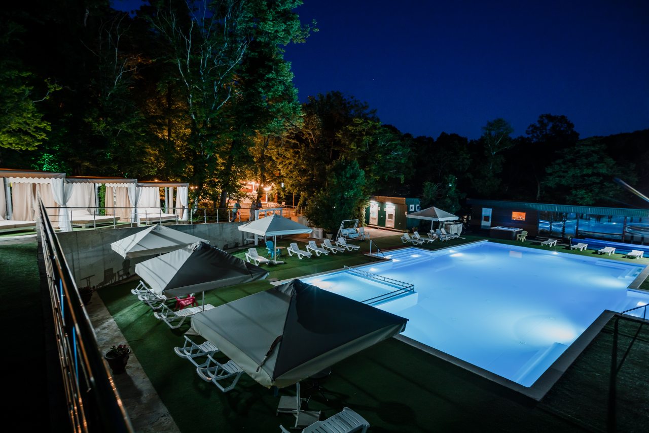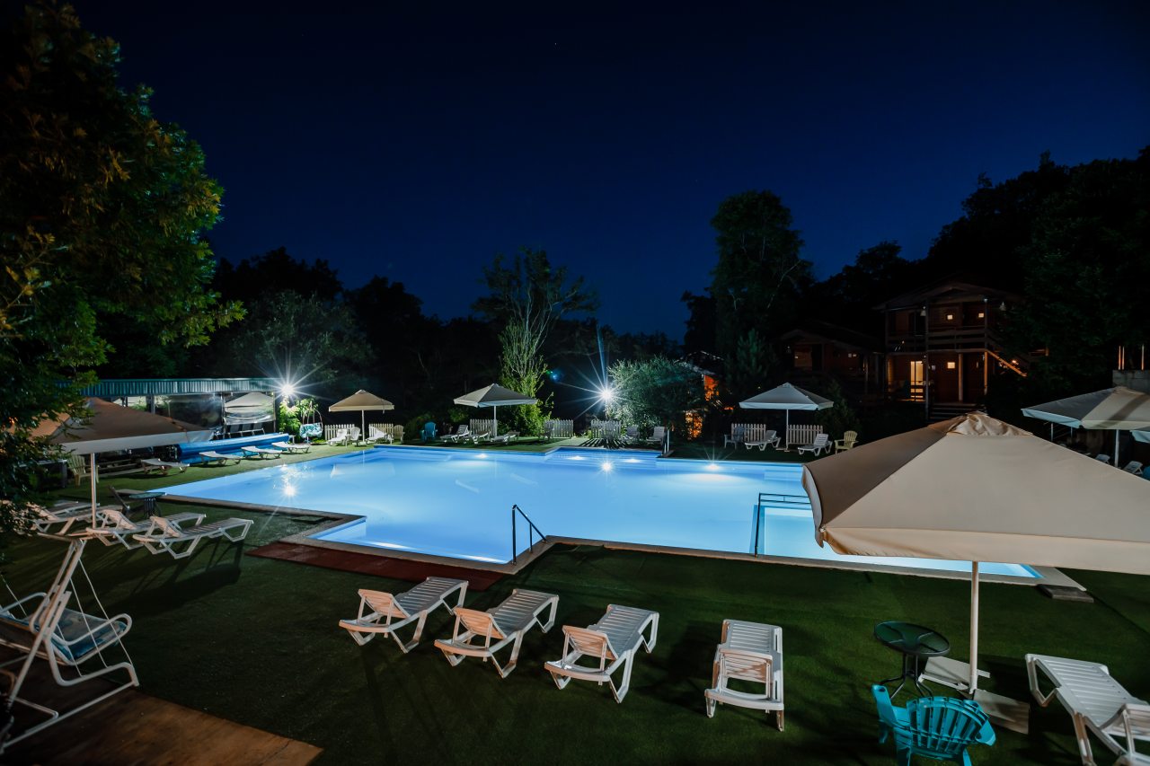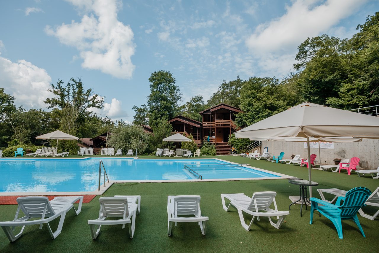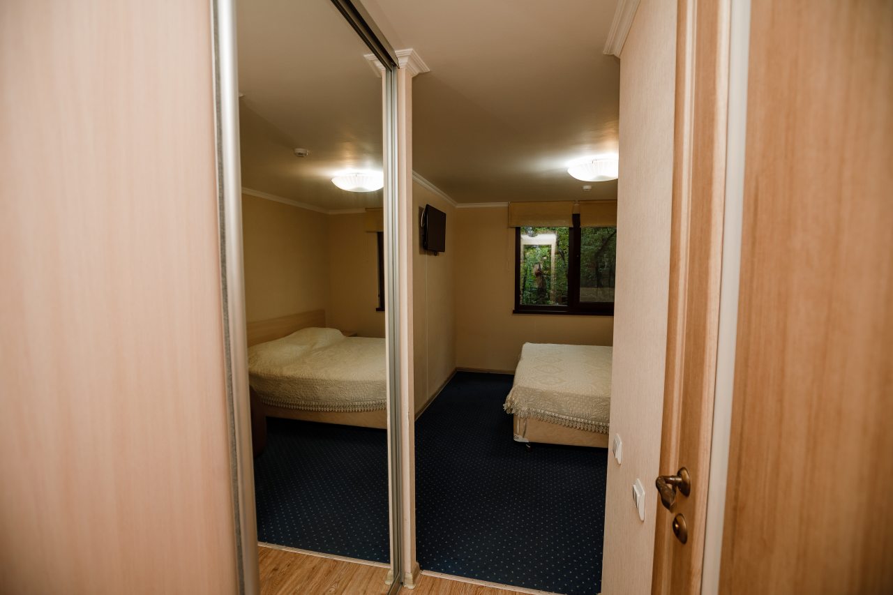 Место расположение отличное , вокруг лес , воздух чистый . Приятная база отдыха, номер комфорт был чистый, хоть и маленький, все что нужно есть. Бассейн рядом. Вообщем рекомендую . Приедем еще