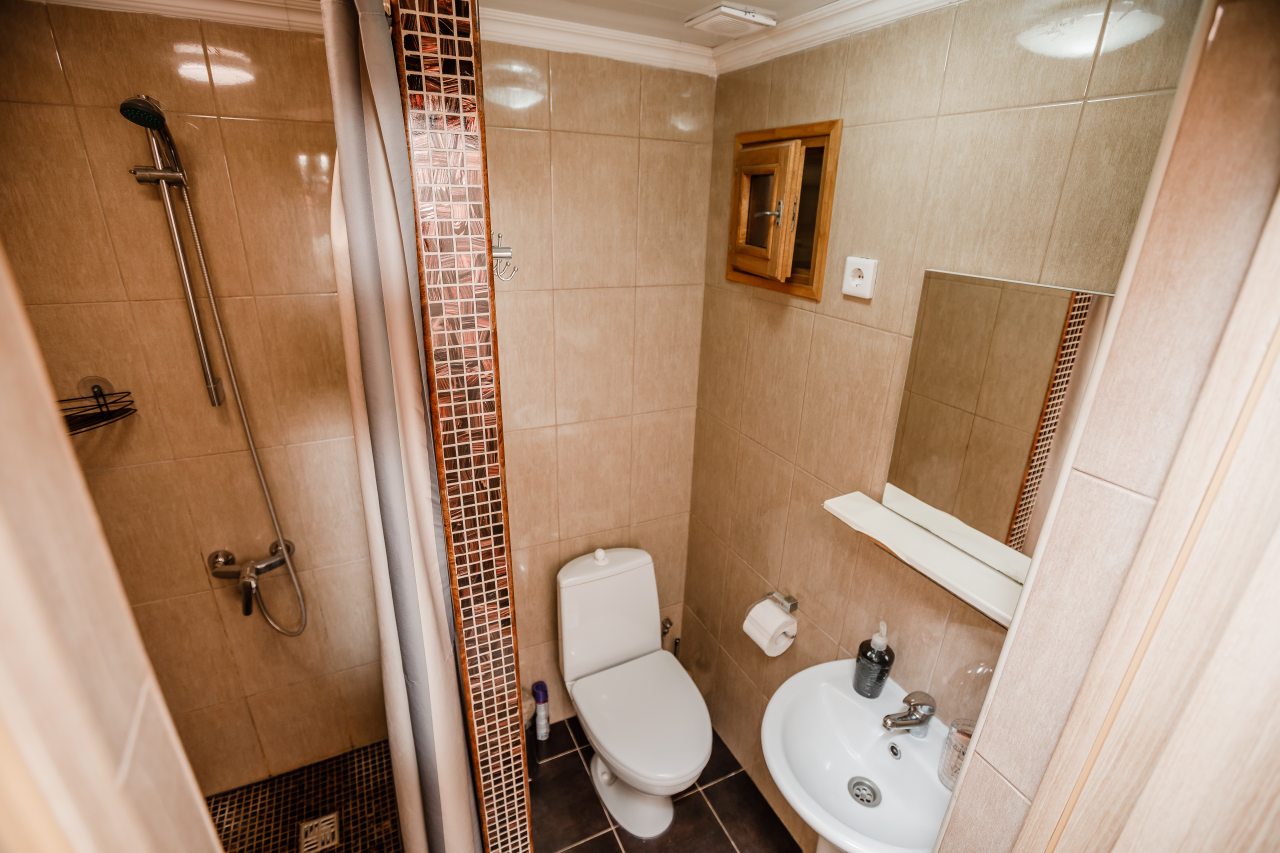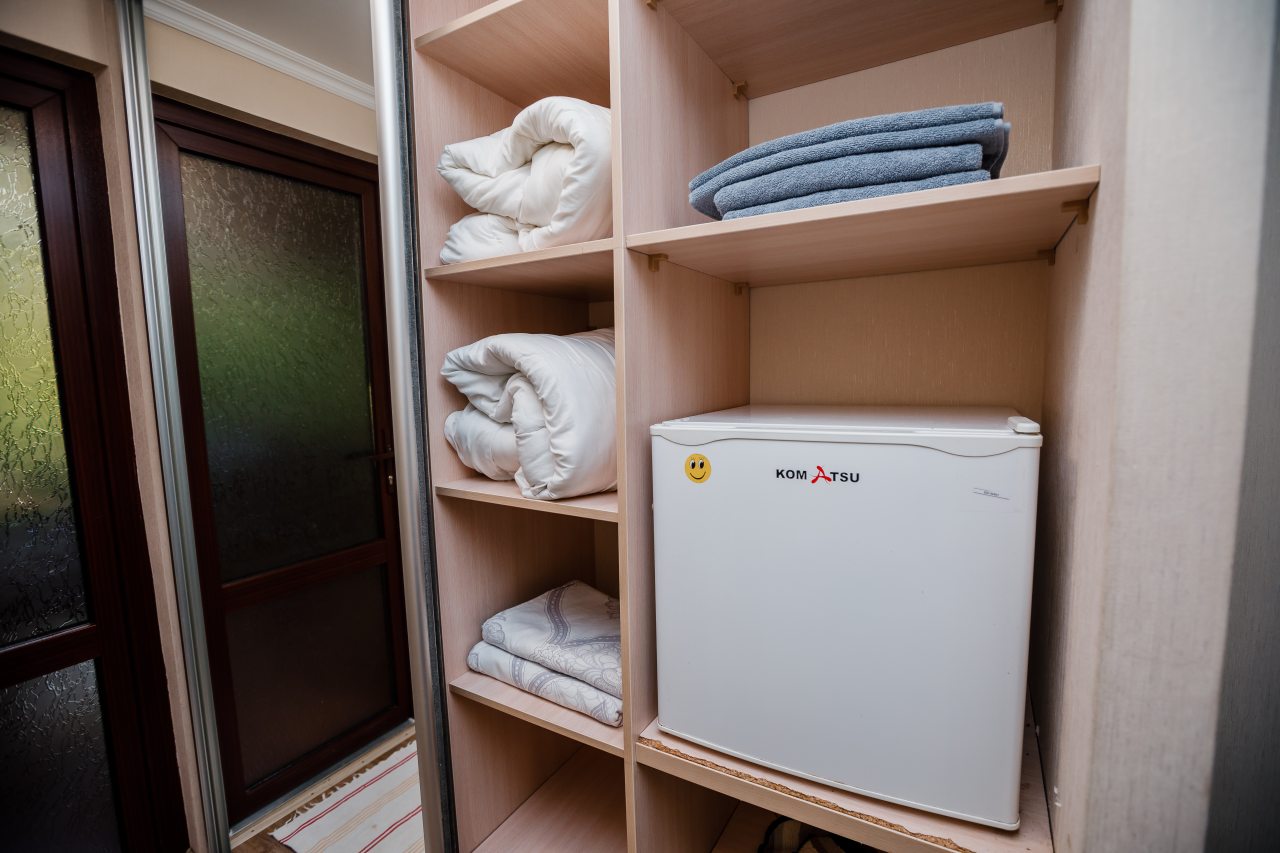 В нашем номере был кондиционер, мебель уже была старенькой, совмещенный санузел. Территория базы отдыха большая, есть где отдохнуть в тени летом. Для детей есть площадка. По цене тут недорого, так что на особо комфортные условия мы и не рассчитывали.