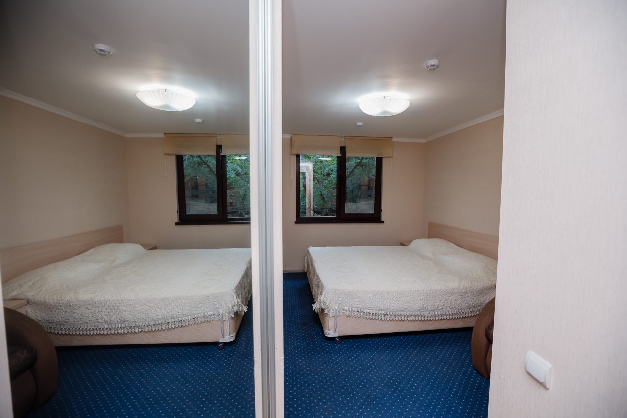Для размещения доступны комфортабельные номера различной категории и вместимости. В каждом из них имеются удобные кровати и функциональная мебель. Санузел оснащен стандартным набором сантехники. Номера категории Люкс укомплектованы ЖК-телевизором, спутниковым телевидением, холодильником и индивидуальной системой кондиционирования.