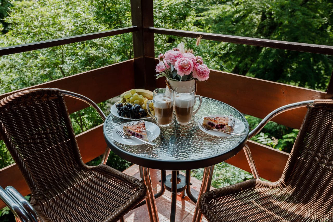 В столовой или кафе на территории отдыхающие могут отведать изысканные блюда, легкие закуски и вкуснейшие напитки. Кухня располагает СВЧ-печью, холодильником, чайником, индукционной плитой и всей кухонной утварью. Также можно посетить заведения общественного питания, которые находятся в шаговой доступности.