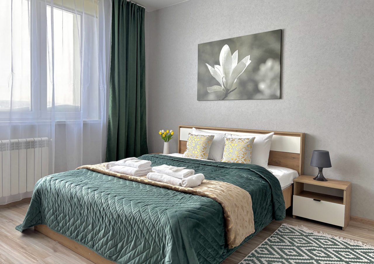 Гостям предлагаются двухкомнатная и трёхкомнатная квартиры, включающие в себя: двуспальную кровать с чистым постельным бельем и набором полотенец, совмещенный санузел со стиральной машиной.