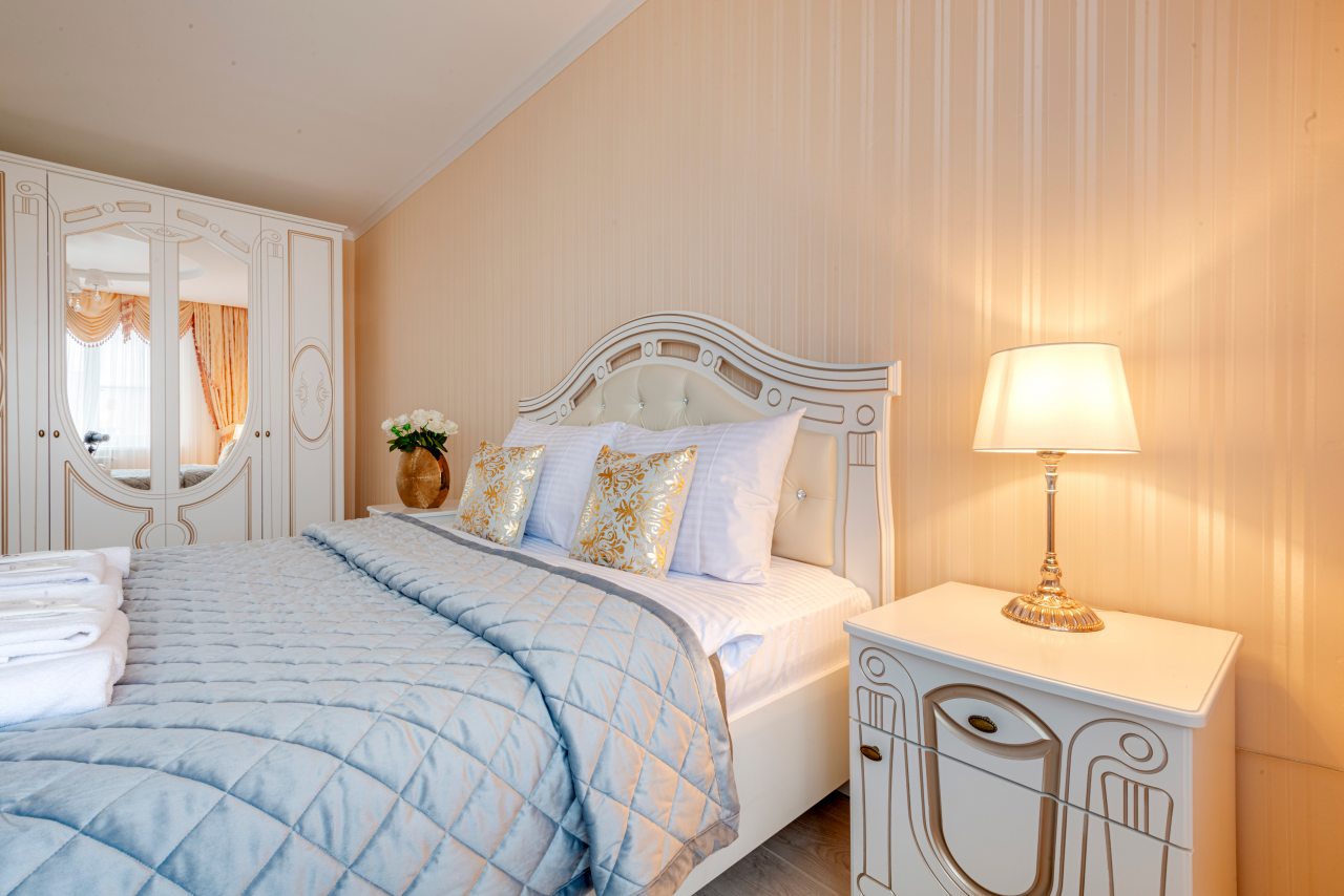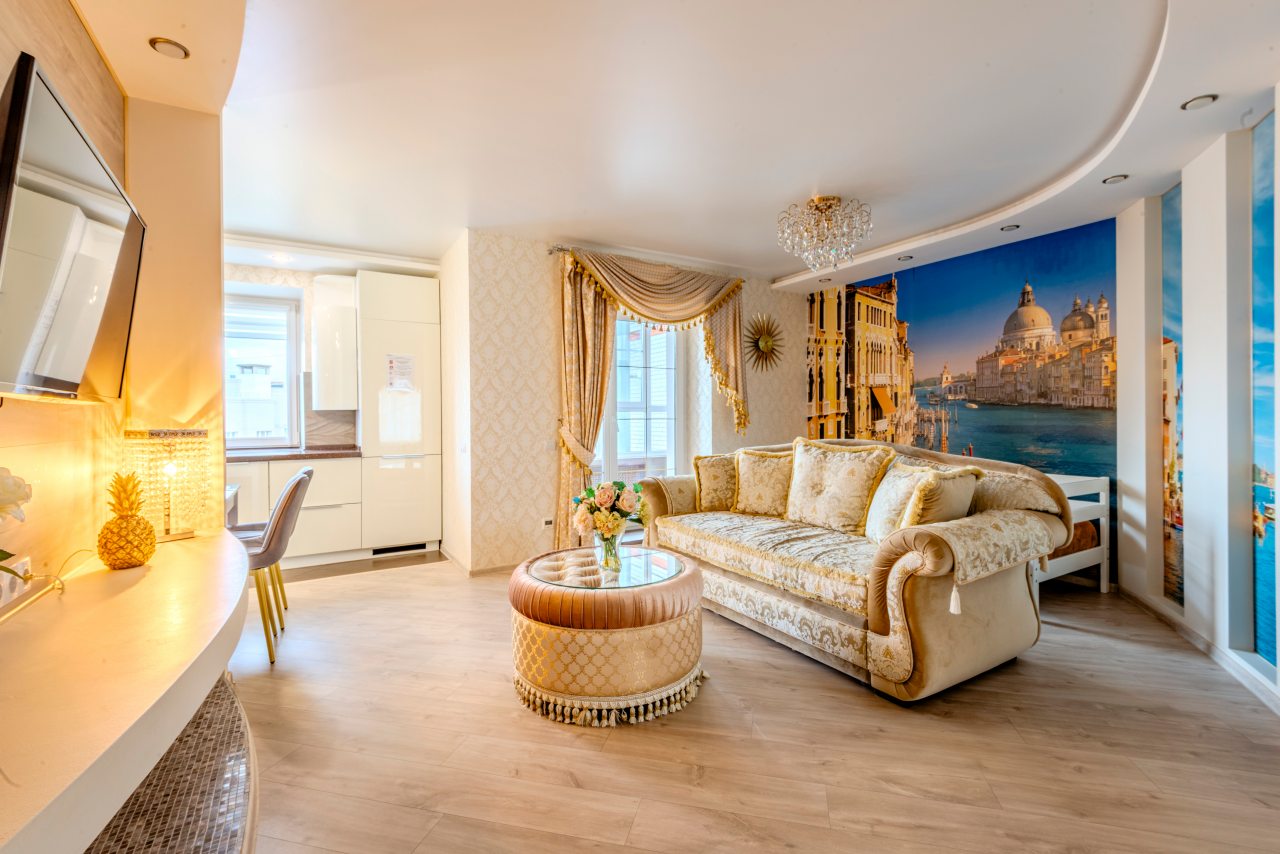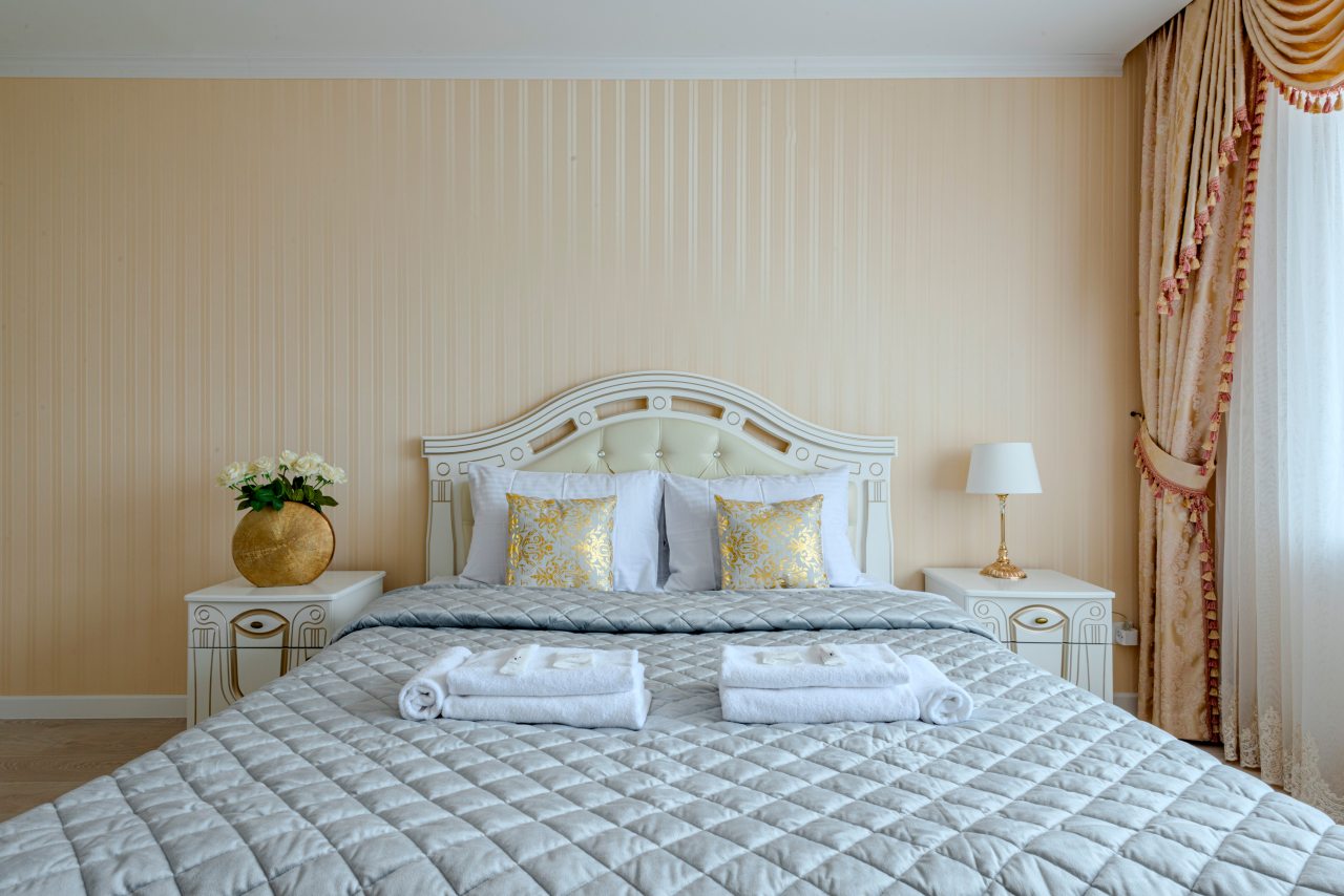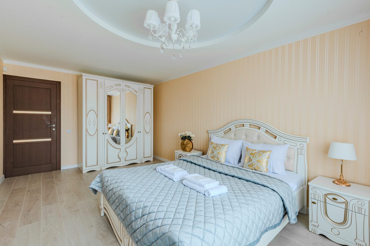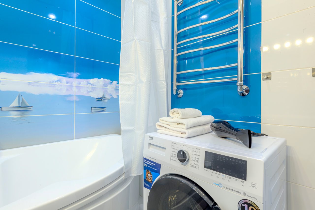 На просторной площади 70 квадратных метров вас ожидает две удобные двуспальные и одна односпальная кровати, а также телевизор, мягкий диван, обустроенный балкон с видом на реку, ванная комната со стиральной машиной и феном.