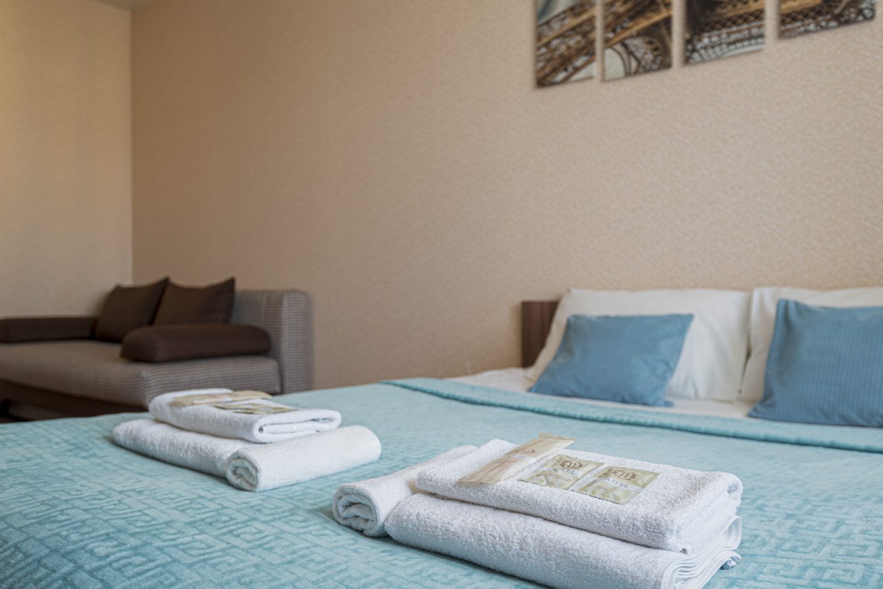 Для комфортного размещения есть все необходимое: удобная мебель, скоростной wi-fi, собственная ванная комната, отопление, гардероб, телевизор.