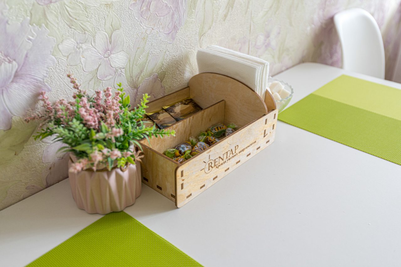 На кухне вы найдете: набор посуды и столовых приборов, электрочайник, холодильник, микроволновую печь. Перекусить гости могут в ближайших ресторанах или кафе. Недалеко располагается пиццерия «ДоДо Пицца» и ресторан «Больше чем мясо».