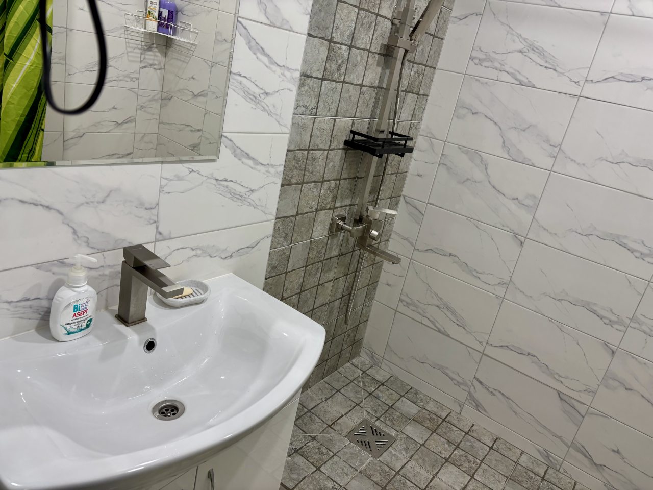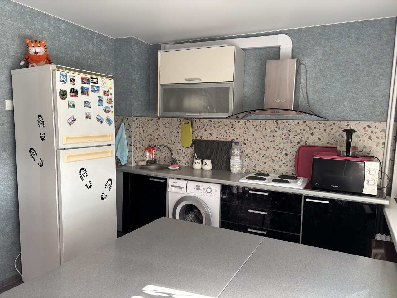 Кухня укомплектована бытовой техникой и кухонными принадлежностями для приготовления пищи. Рядом располагаются магазины, кафе, столовые.