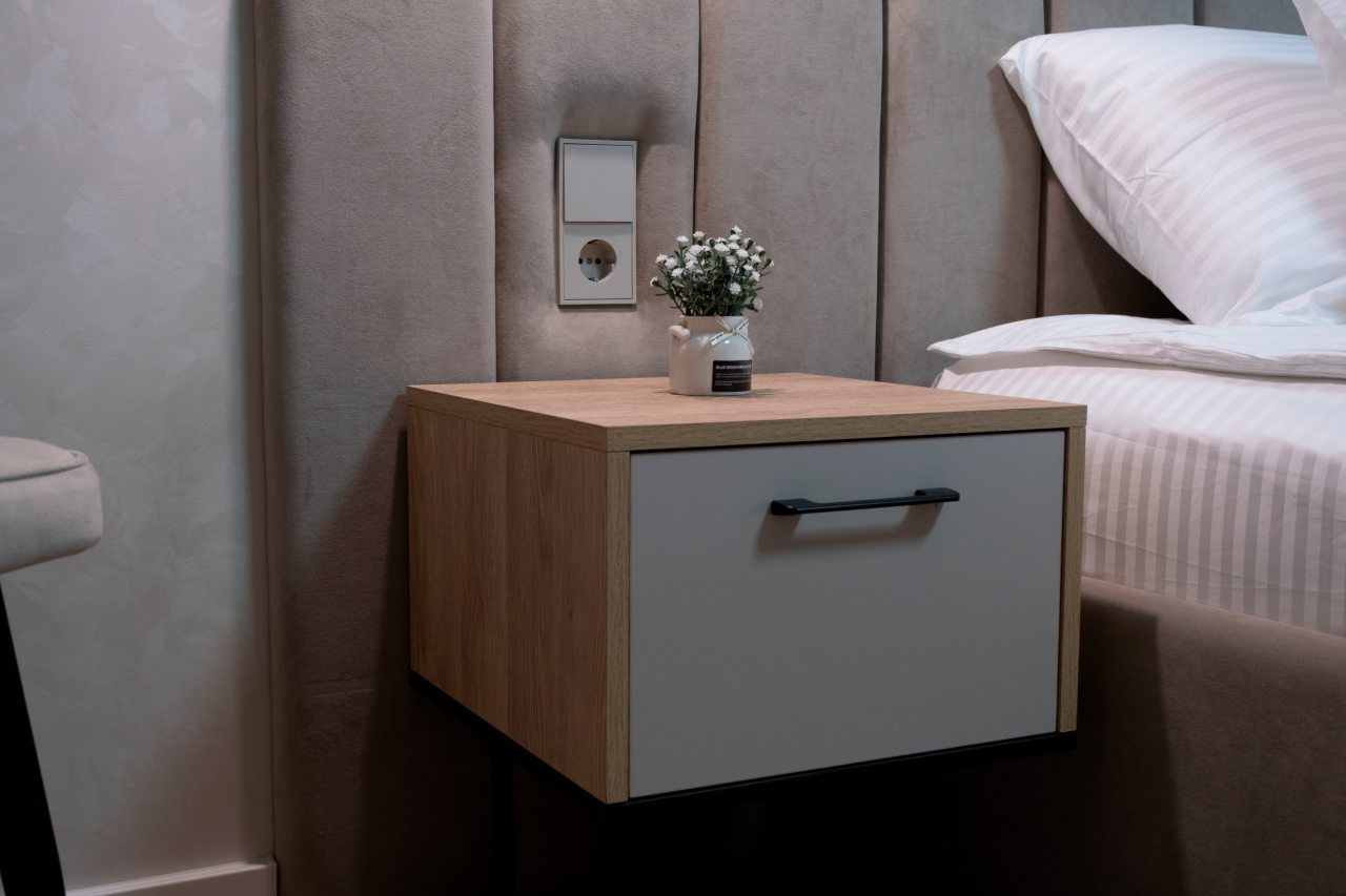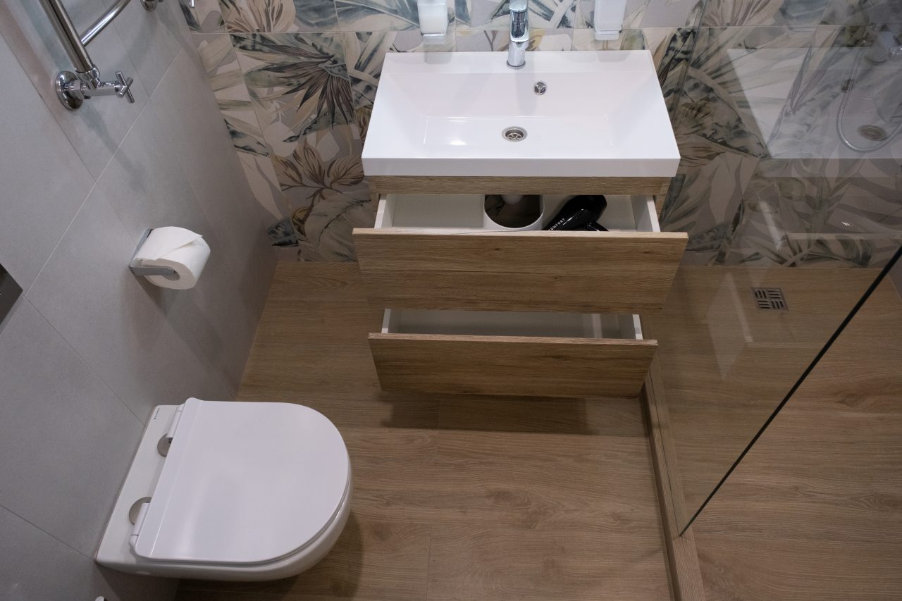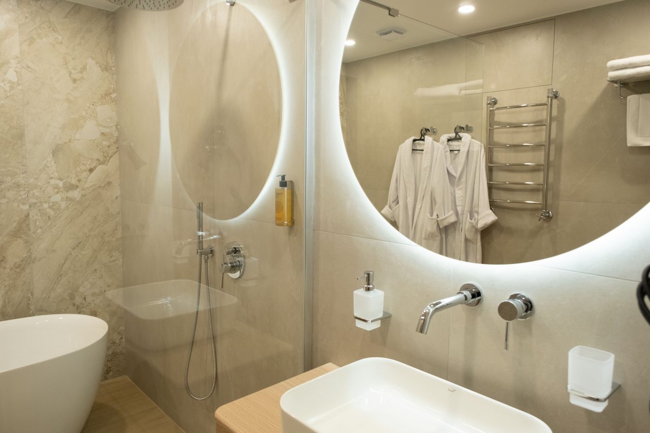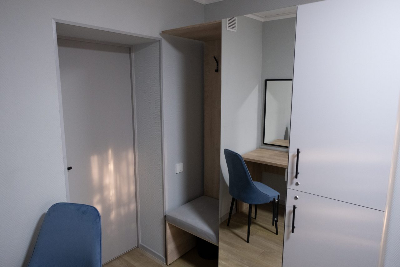 Номера оснащены спальными местами, прикроватной мебелью, шкафом. Санузел оборудован раковиной, душевой кабиной, есть стиральная машина.
