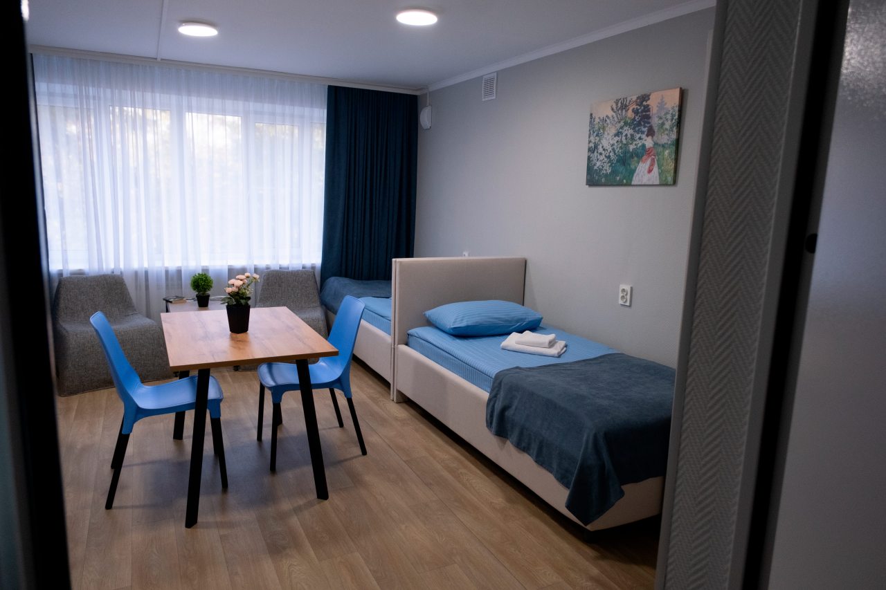Чистый новый современный отель. Есть общая кухня с телевизором. Там также все в полном порядке. Также есть типа прачечной, где можно привести в порядок свои вещи. Расположен отлично. Рядом сквер, набережная для ваших прогулок. Но и в городе есть на что поглазеть, с этой целью и ехали на пару суток.