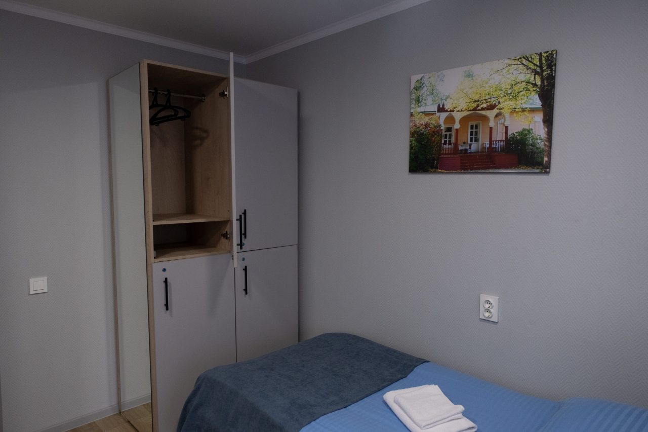 Из недостатков: гостиница не подойдёт тем гостям, которые чутко и долго спят! Так как шумоизоляция отсутствует(по вечерам Вы будите слышать соседей, которые будут смотреть в гостиной общий телевизор, принимать пищу, вести беседы, а по утрам Вас разбудят те-же соседи и детский сад под окнами(если кому то "повезёт" с номером). В номере не хватает собственного телевизора, мусорного ведра, часов и ночничка! Туалет, душ отдельно стоящие!