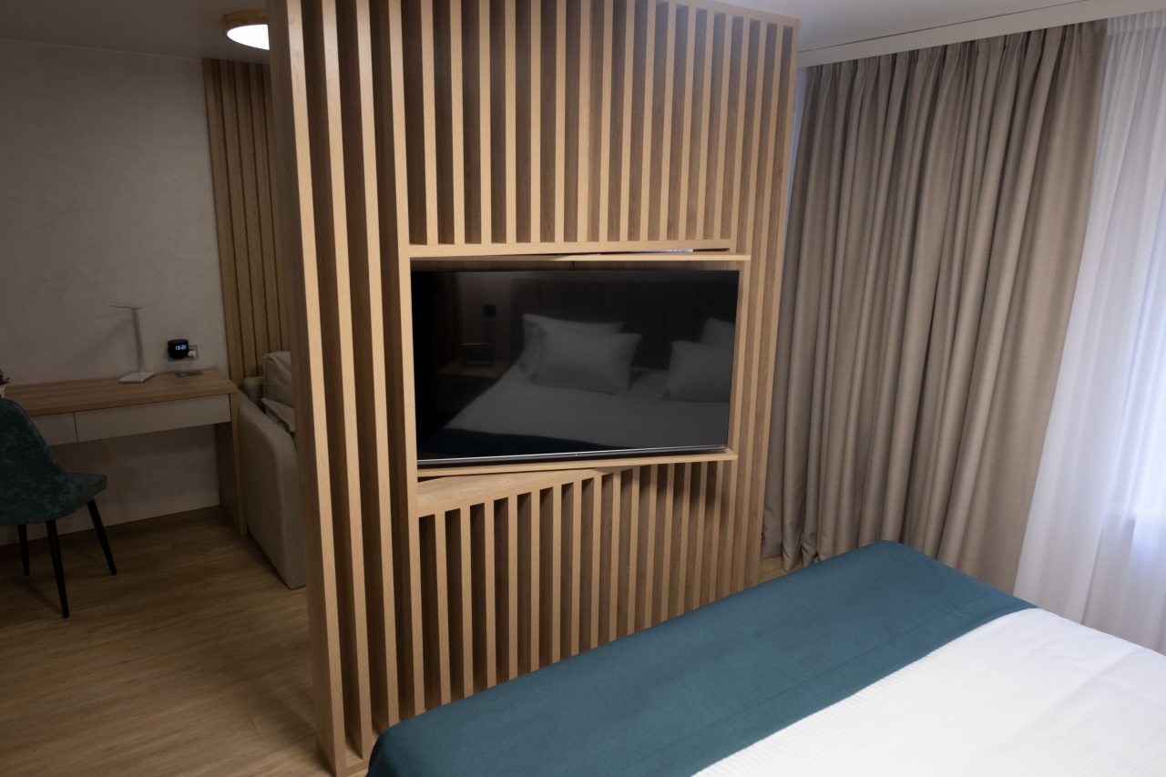 Приятный отель, даже не ожидали, что нам здесь настолько понравится. Чистый и уютный номер, есть все необходимое для комфортного проживания. Можно приготовить что-нибудь простое на кухне или перекусить в кафе неподалеку. Ванная комната чистая, ничего не протекает. неприятного запаха нет. Красивый парк рядом. гуляли там постоянно.